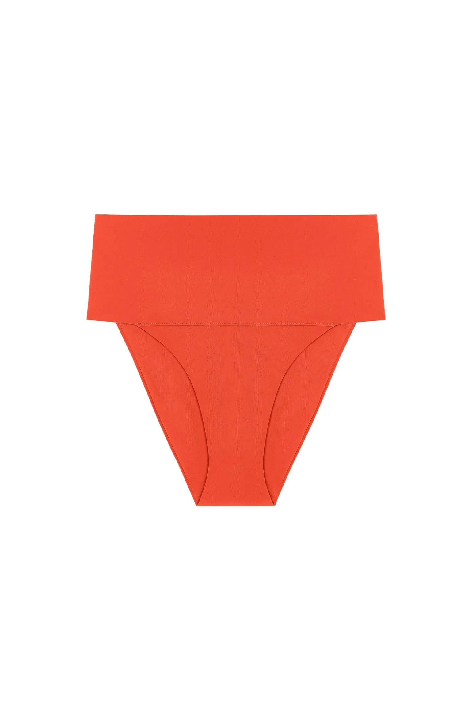 - Bas de maillot taille haute droite avec large bande rabattable en bonded