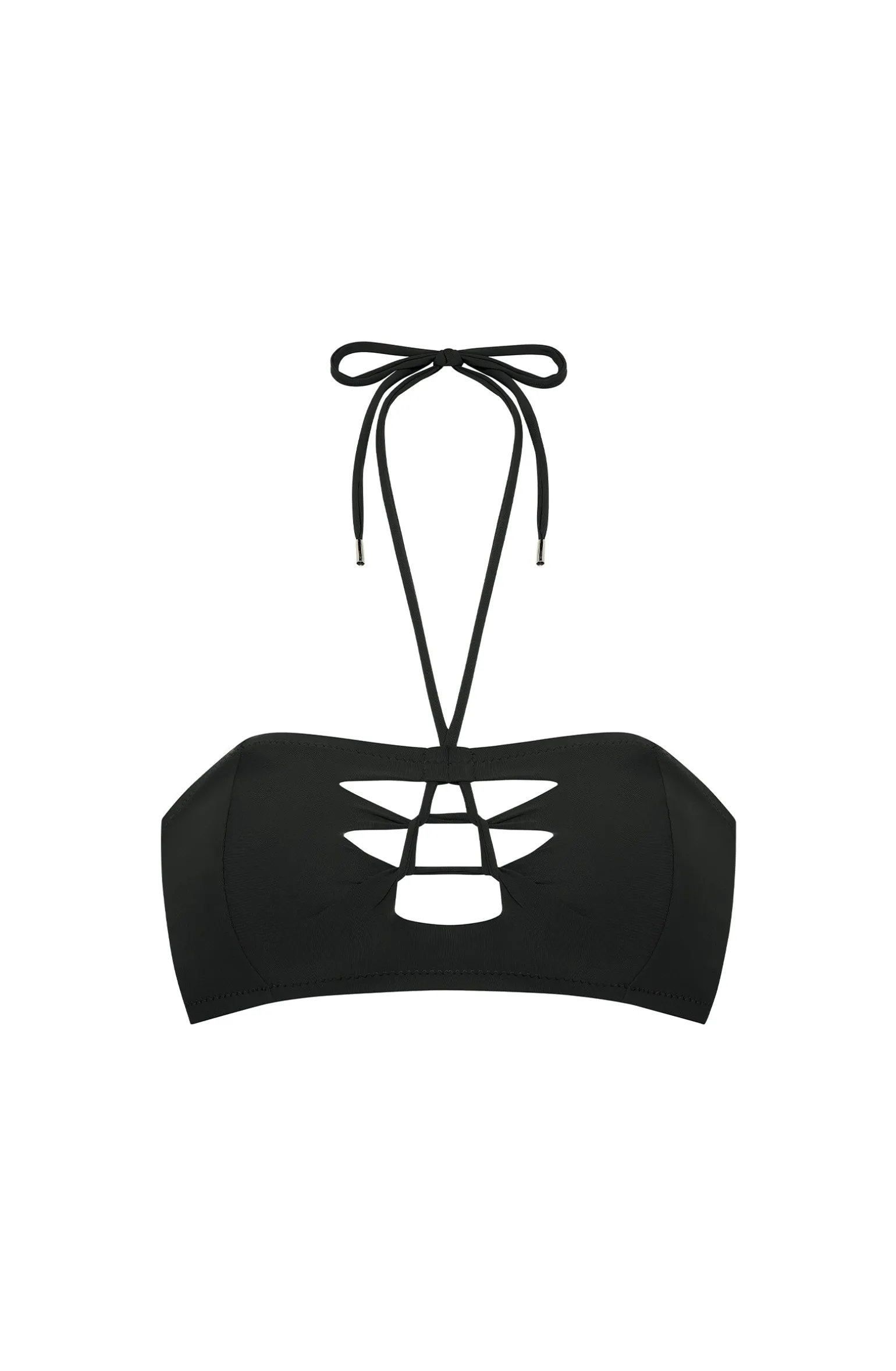 Simple et sophistiqué, le bandeau souple BALA dessine un décolleté plongeant, très graphique. Ajouré entre-seins, le lycra s’entremêle dans un jeu de laçage moderne et créatif. Indémodable et toujours élégant, le noir met en valeur toutes les morphologies.
