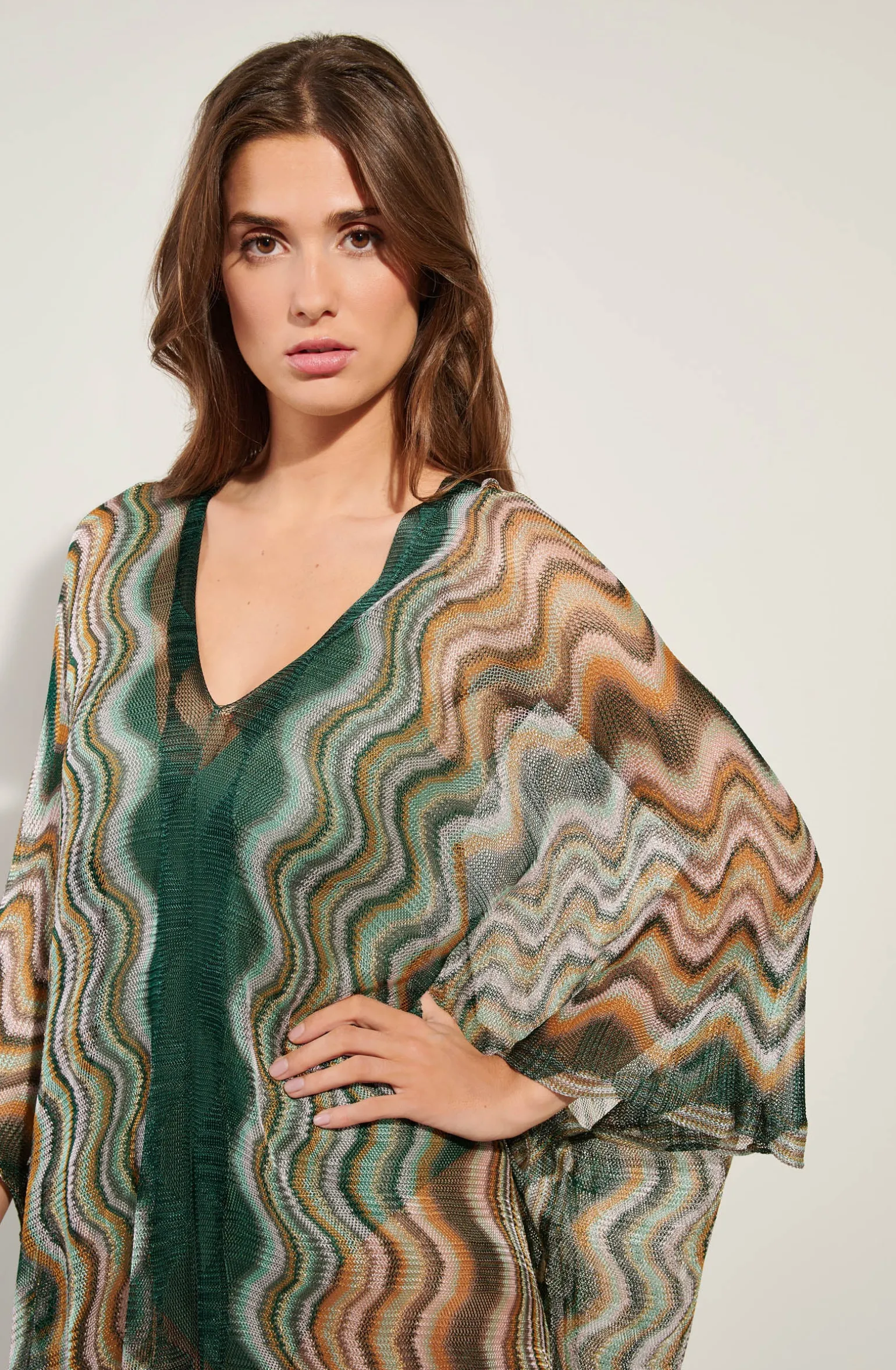 - Poncho semi-transparent en fine résille zig-zag multicolore