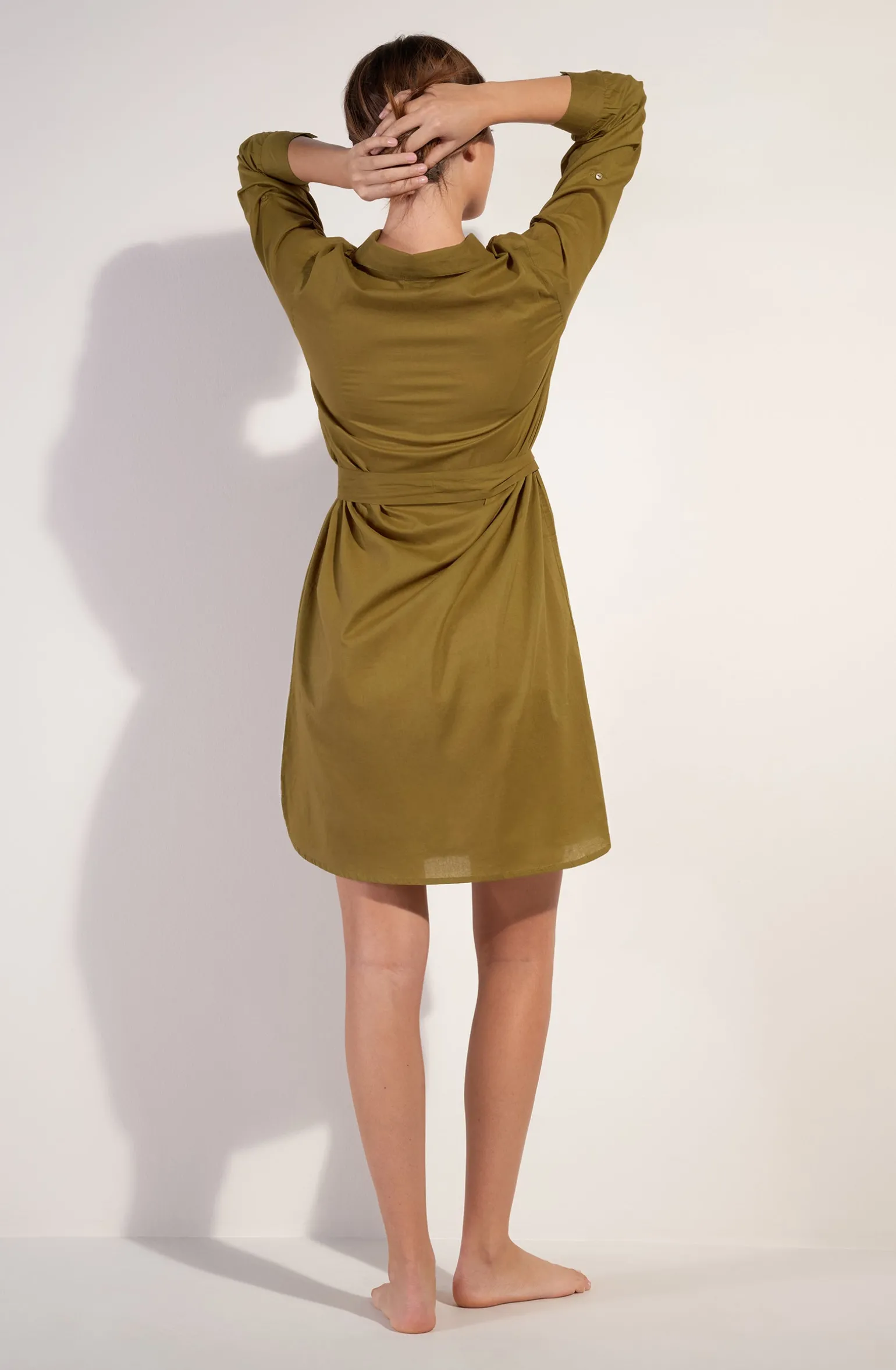 Avec sa coupe droite oversize et ses longues manches qui peuvent se retrousser, la robe chemise ceinturée CASSANDRE s’adapte à toutes les morphologies. Habillé et décontracté, ce basique se porte en toutes occasions. Bronze, une teinte minérale authentique, combinaison de jaune-vert.