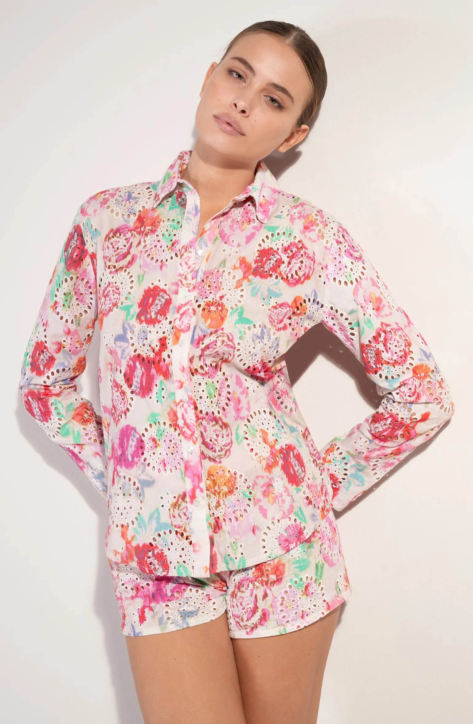 - Broderie anglaise avec imprimé GARDEN motifs fleuris délicats