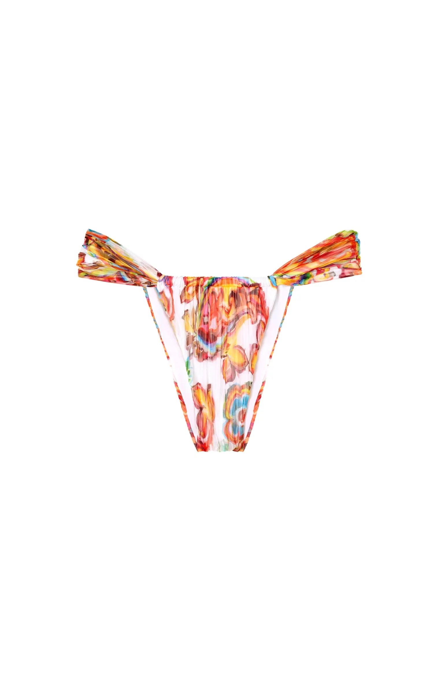 Le bas de maillot en voile plissé DIO se transforme à l’infini. Sur les côtés, un lien, effet foulard, coulisse subtilement pour sublimer les formes. Culotte couvrante, tanga, string échancré, une pièce sophistiquée à porter au gré des envies. L’imprimé Paisley livre une version allégorique des lettres persanes pour un road trip hippie chic.