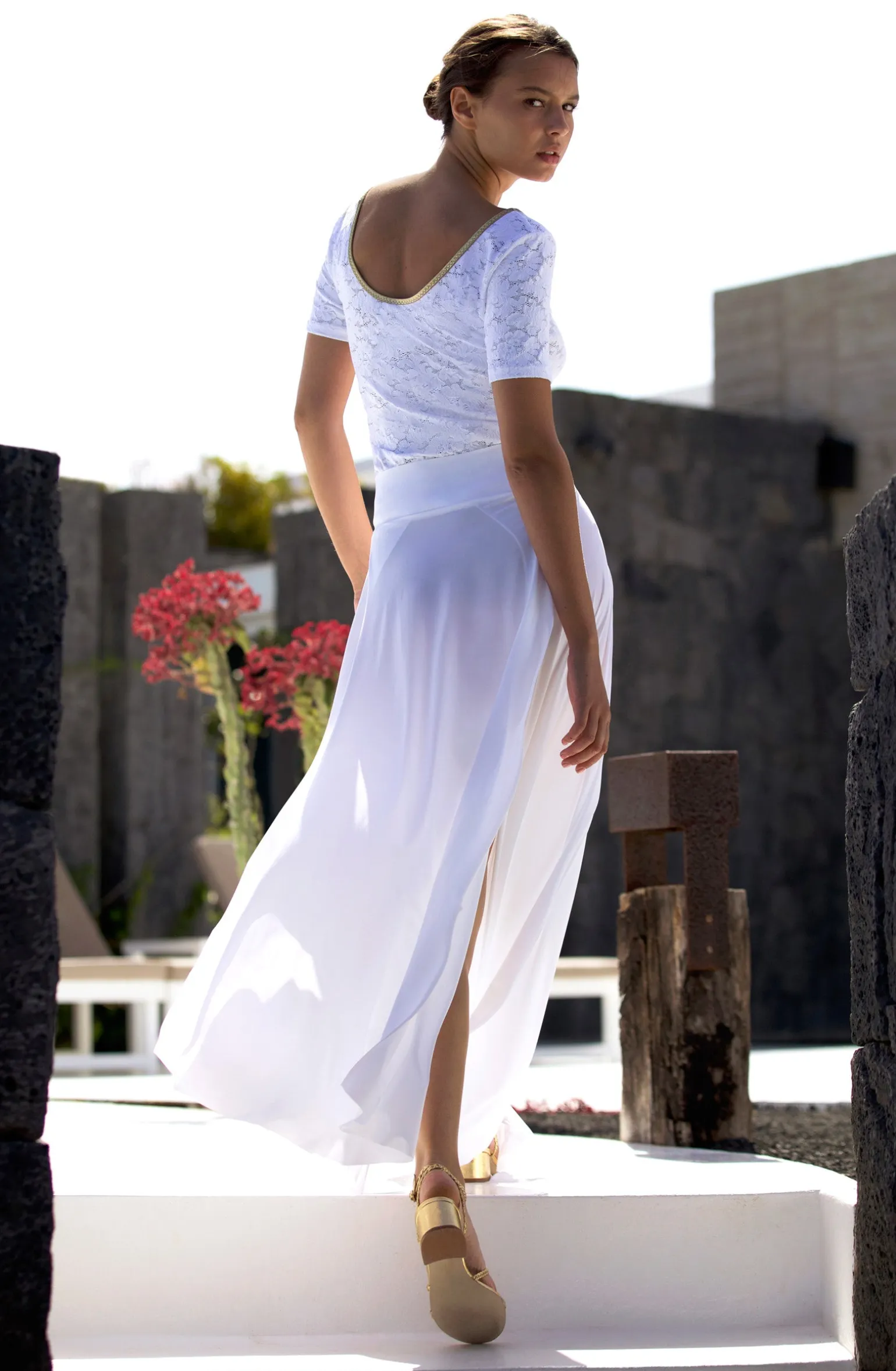 La jupe JAX s’affranchit des codes de la classique jupe longue évasée. Sur le chemin de la plage, elle flotte au gré de nos pas, dévoilant avec force notre féminité. Sa taille en matière bonded souligne avec grâce notre taille. Pur et délicat, le blanc illumine le teint.