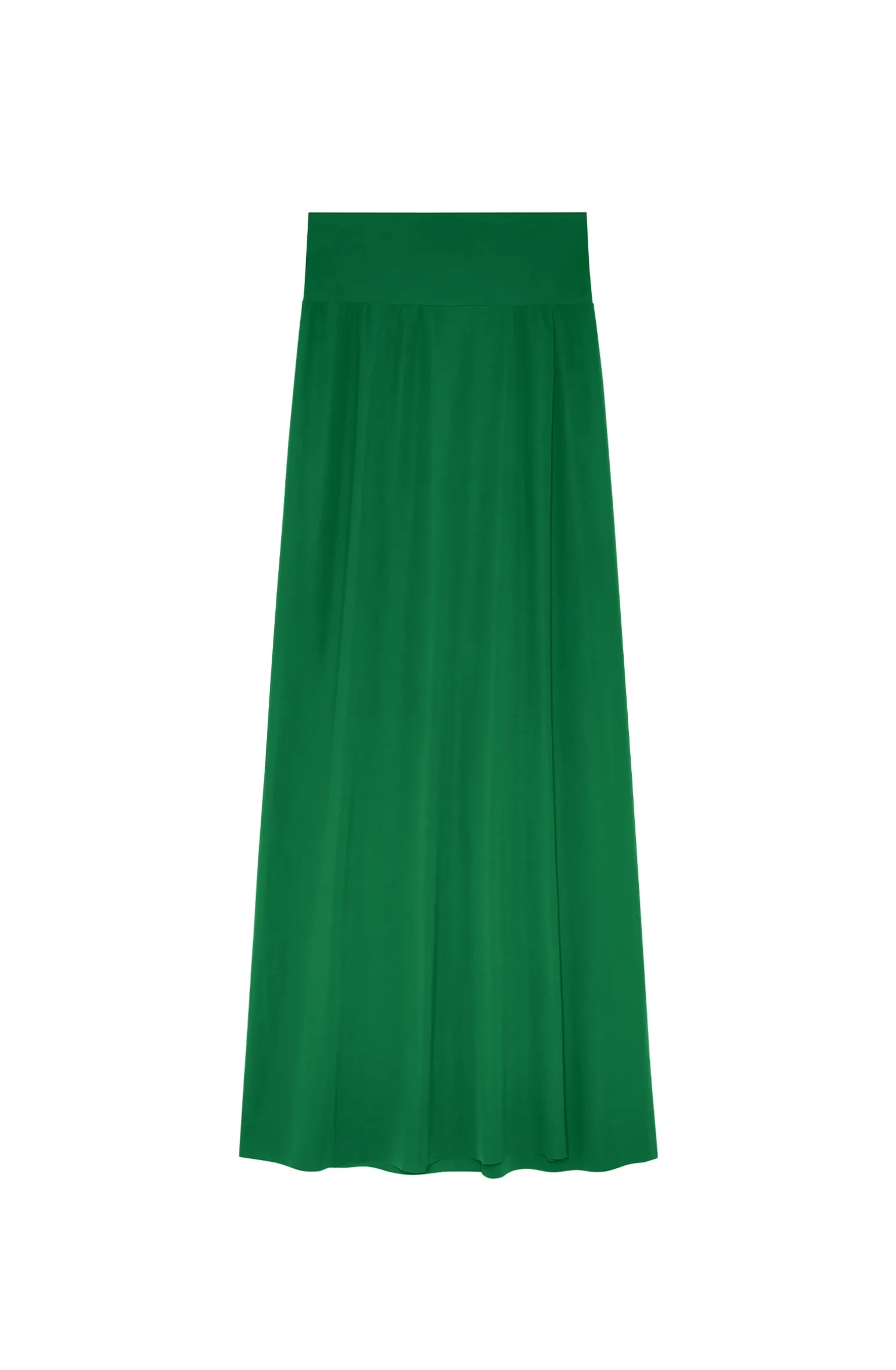 Avec sa large ceinture, la jupe portefeuille fluide JUDIE souligne élégamment la taille. Pour une silhouette plus libre, cette longue jupe fendue se porte aussi taille basse. Jade, un vert prononcé intensément doux et lumineux.