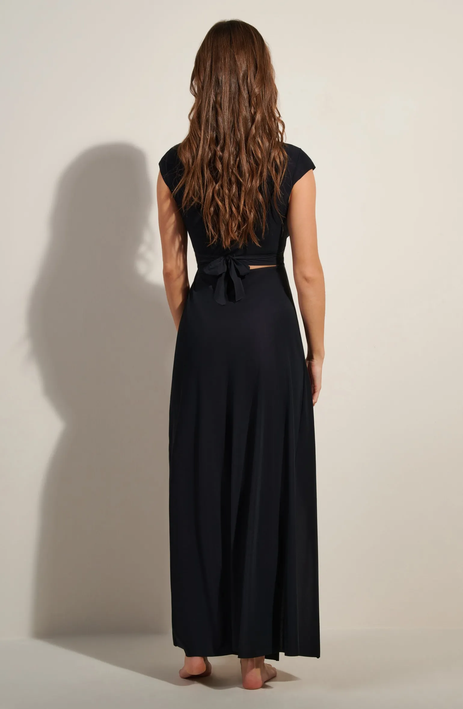 La robe longue et fluide KOLIL combine crop-top et jupe droite pour une silhouette élancée. Toute en légèreté, elle se porte devant-derrière et se noue de multiples façons. Jeu subtil de décolletés, elle change de style au gré des envies. Le noir, couleur intemporelle et toujours élégante.