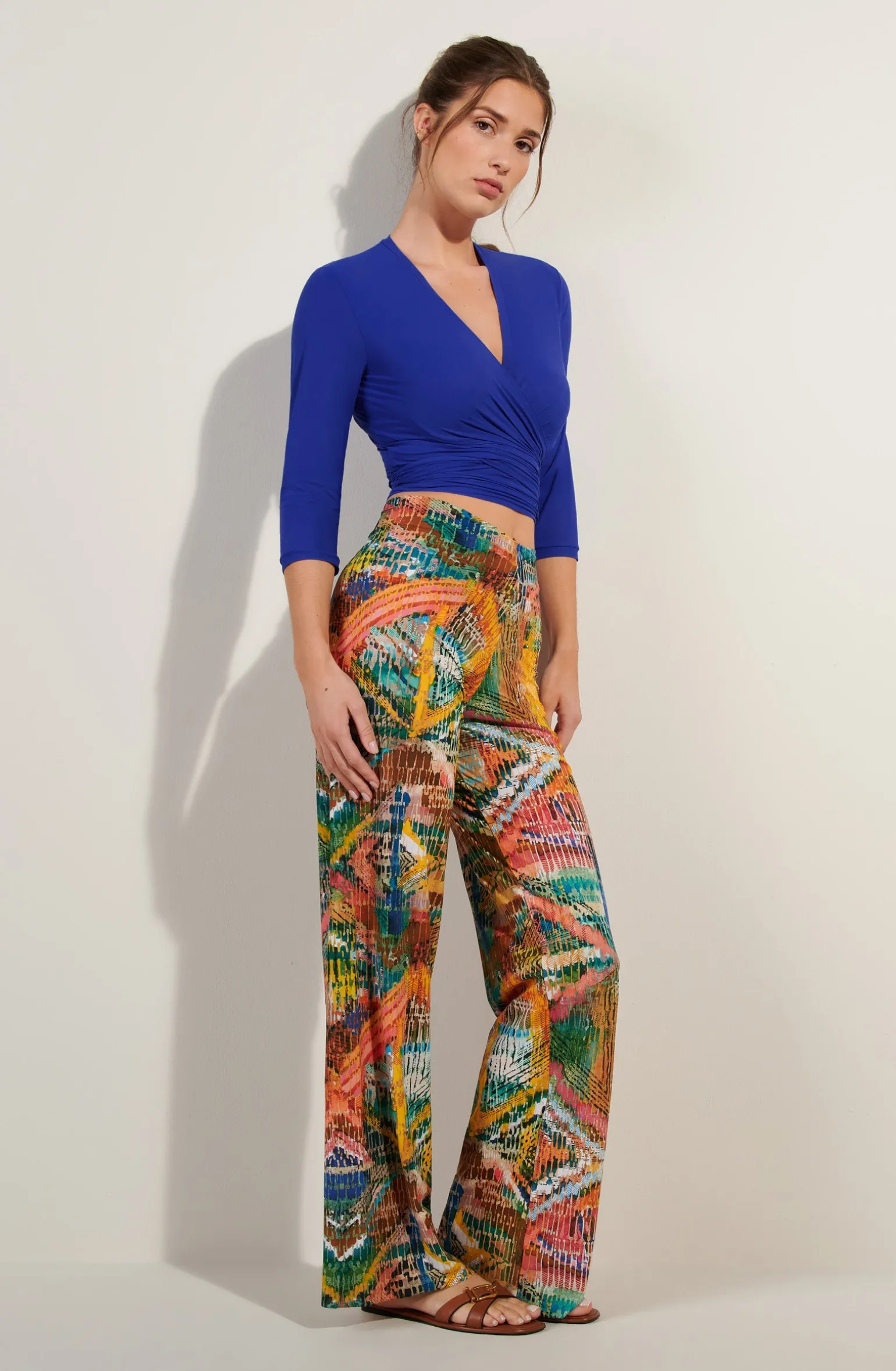 - Haut cache-coeur à manches 3/4 en voile léger extensible