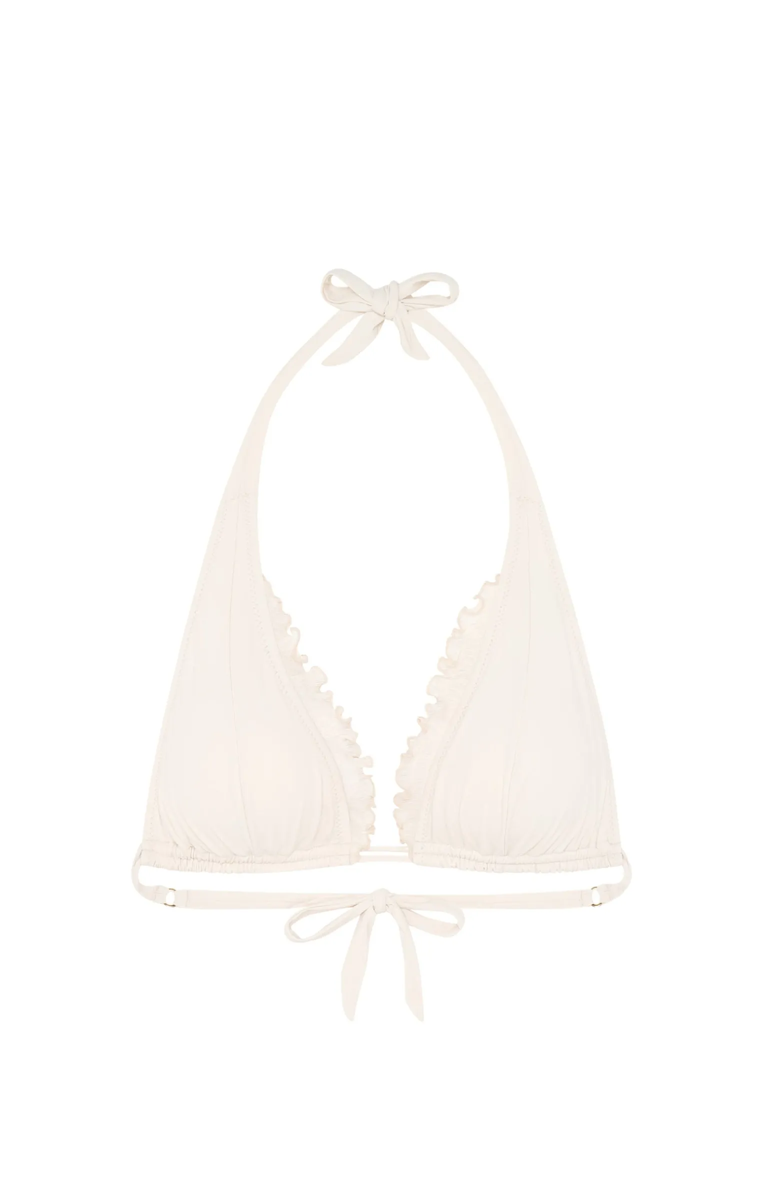 Avec ses coques amovibles, le haut de maillot MAELYS sublime toutes les poitrines et assure un maintien parfait grâce à son double lien coulissant. On tombe sous le charme de ses petits volants en voile plissé qui entourent le décolleté avec légèreté en lui donnant du volume. Les larges bretelles intégrées aux bonnets se nouent dans le dos et la nuque avec élégance. Ivoire, un blanc chaleureux, légèrement nacré.