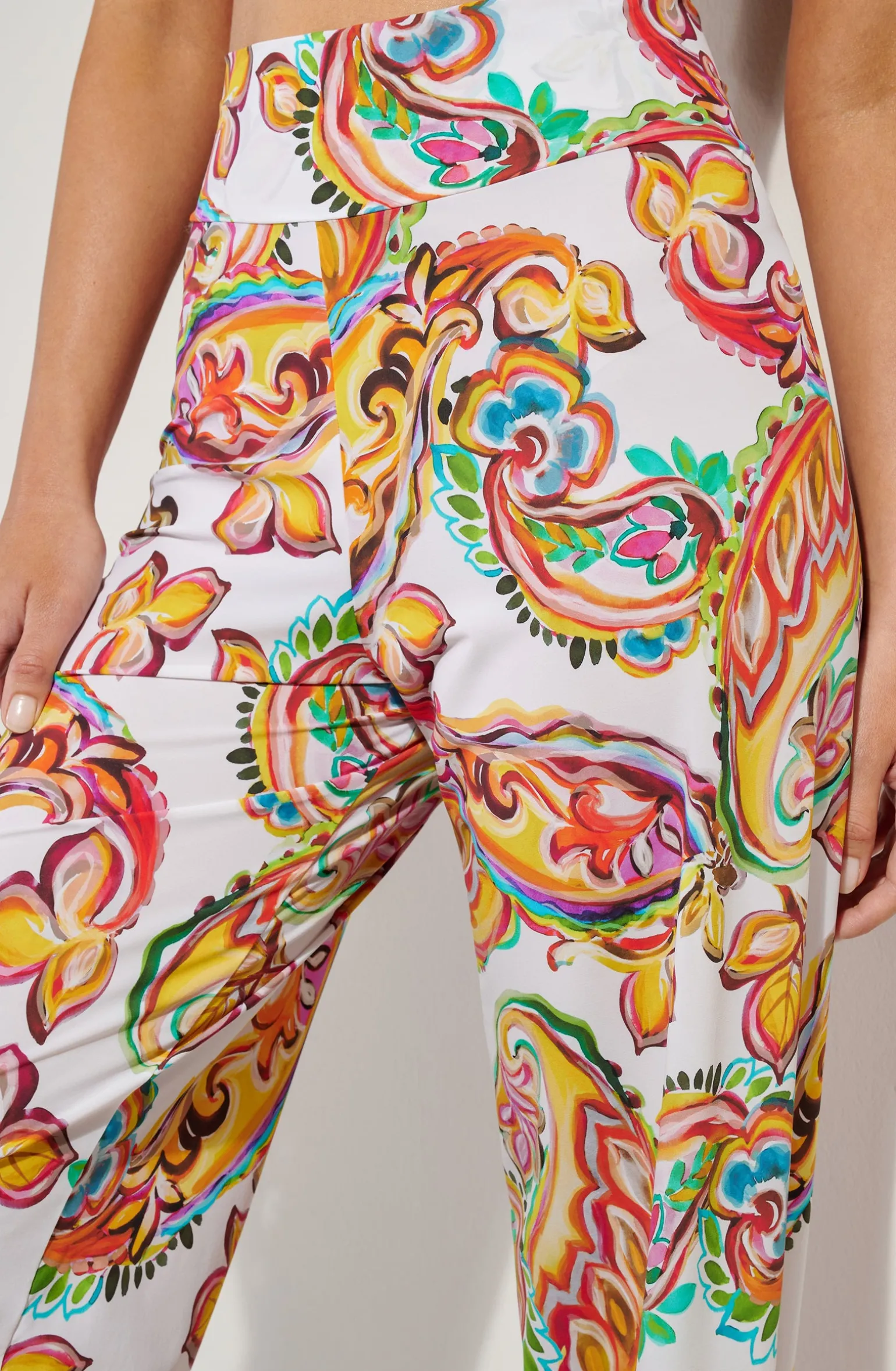 Le voile souple et extensible du pantalon PATIE habille la silhouette tout en simplicité. La large ceinture élastiquée à la taille offre à ce bas une allure légère et distinguée. L’imprimé Paisley livre une version allégorique des lettres persanes pour un road trip hippie chic.