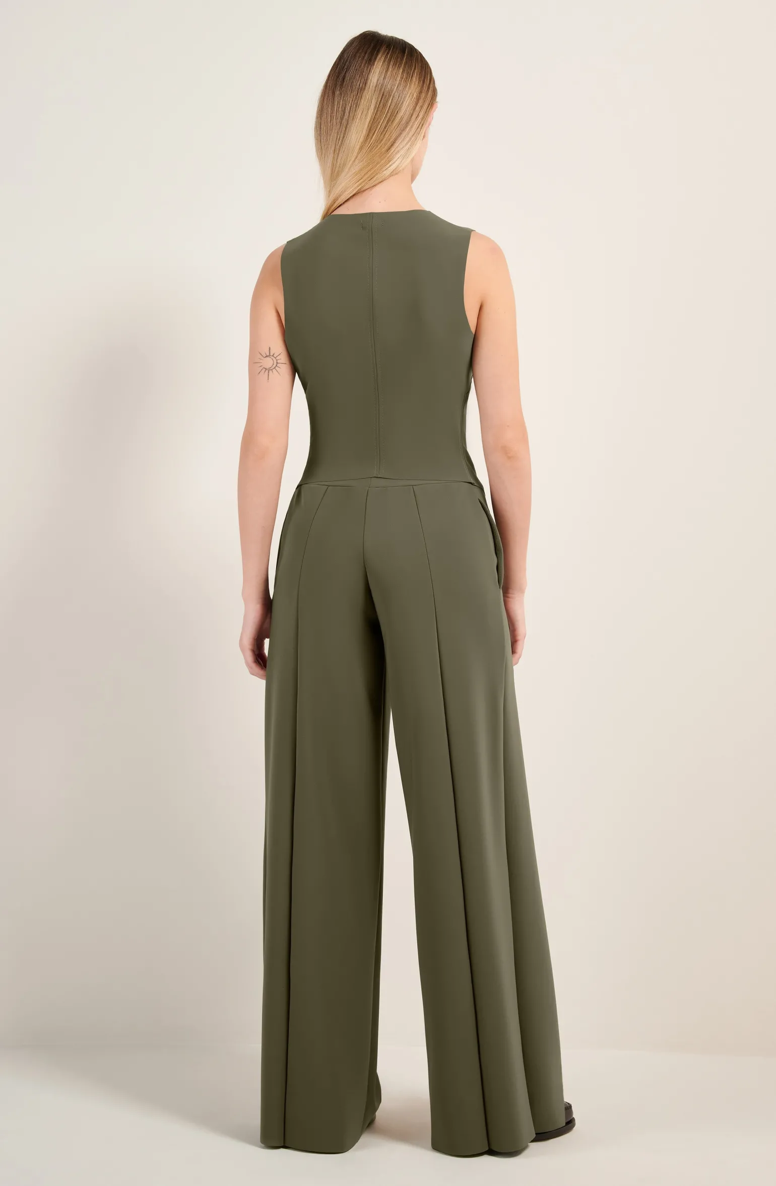 Avec sa coupe couture, le pantalon taille haute en Bonded PEGGY dévoile une coupe large et révèle une silhouette structurée, toute en fluidité. Avec ses discrètes poches fendues, cette pièce tout confort est un incontournable. Lichen, une teinte organique, vert kaki.