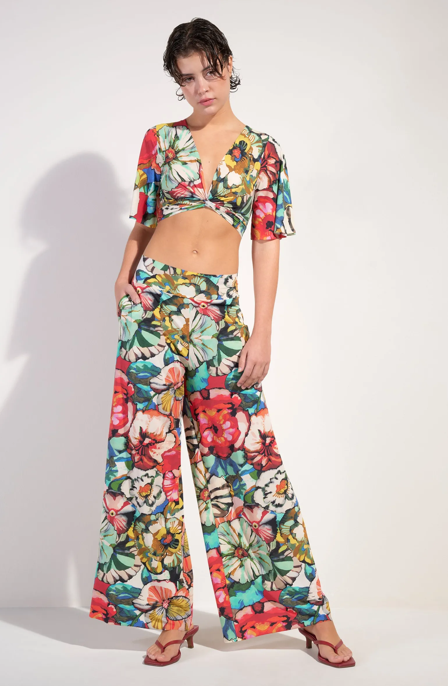 Le voile extensible du pantalon ample PITTA habille la silhouette avec légèreté. La large ceinture élastiquée à la taille et les petites poches plaquées offrent à ce bas une allure infiniment décontractée. L’imprimé Flower, une nature exubérante où les fleurs aux couleurs chatoyantes incarnent l’esprit Flower Power. Une invitation à embrasser la vie…