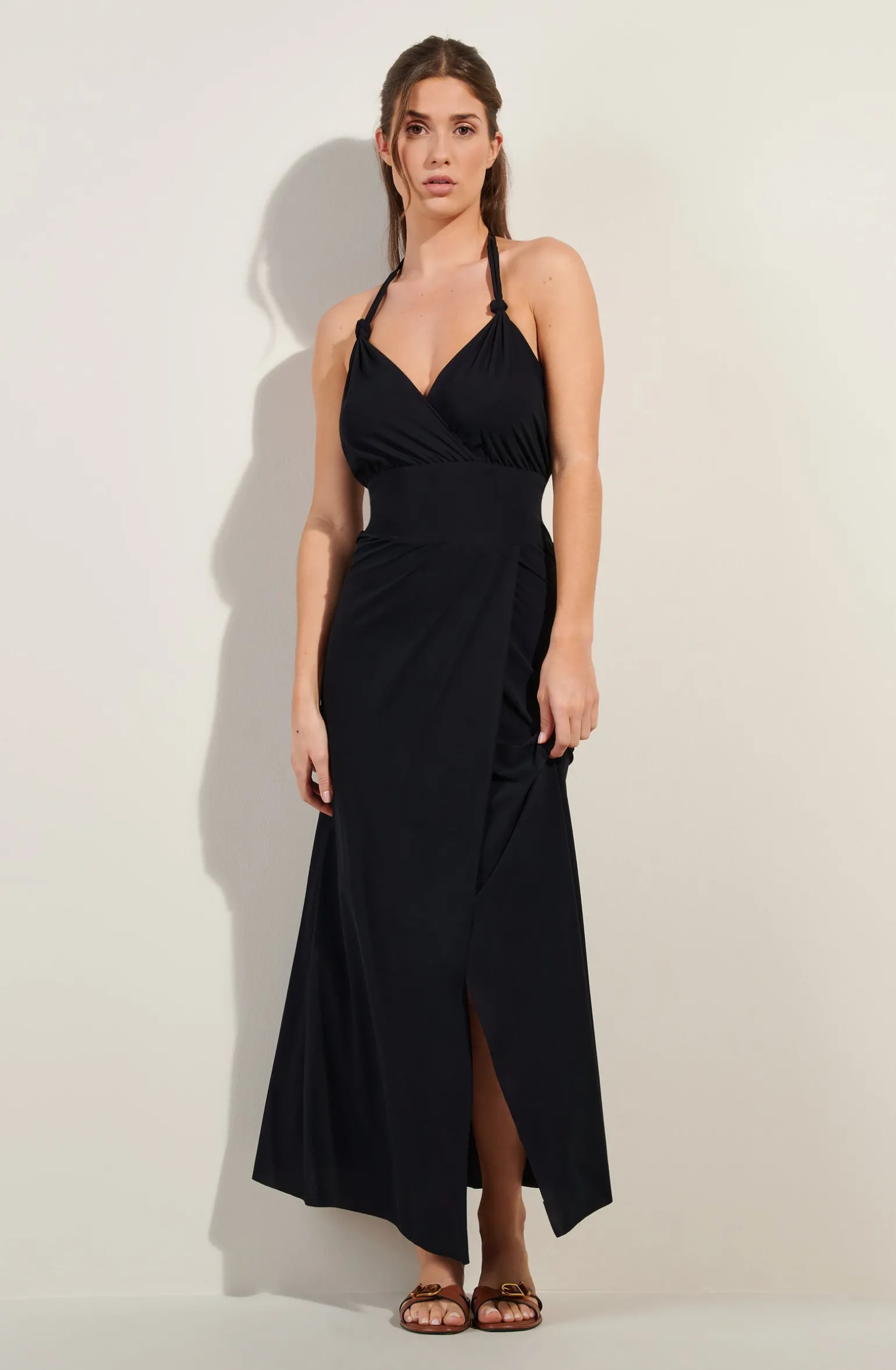 - Longue robe portefeuille dos nu en voile léger extensible