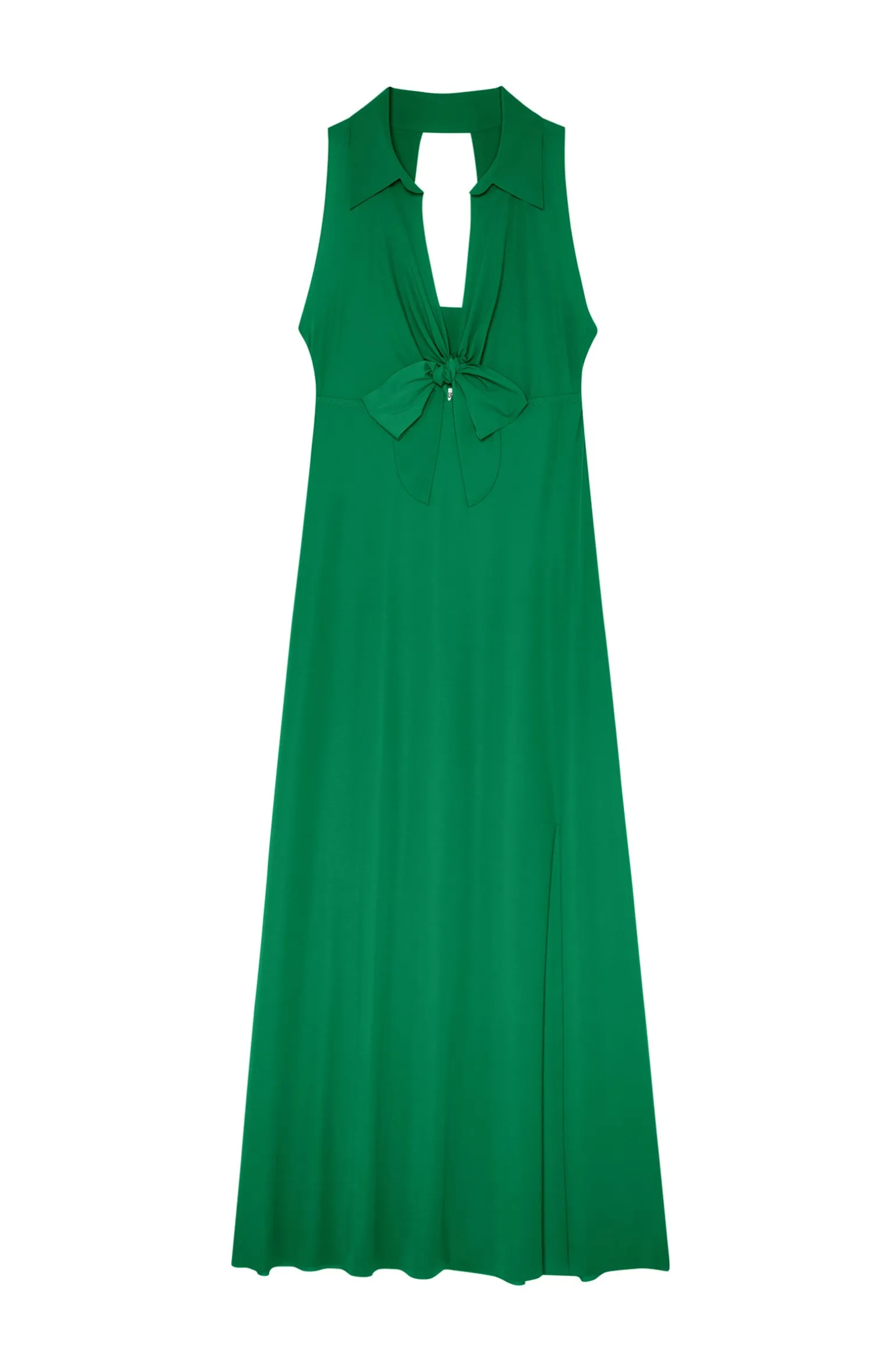 La robe longue fendue ROVA incarne l’élégance avec légèreté. Son haut, effet cache-cœur, se noue devant ou dans le dos et la couture sous poitrine met en valeur le décolleté. Avec son col chemise en bonded et son dos nu graphique, cette pièce est un incontournable. Jade, un vert prononcé intensément doux et lumineux.