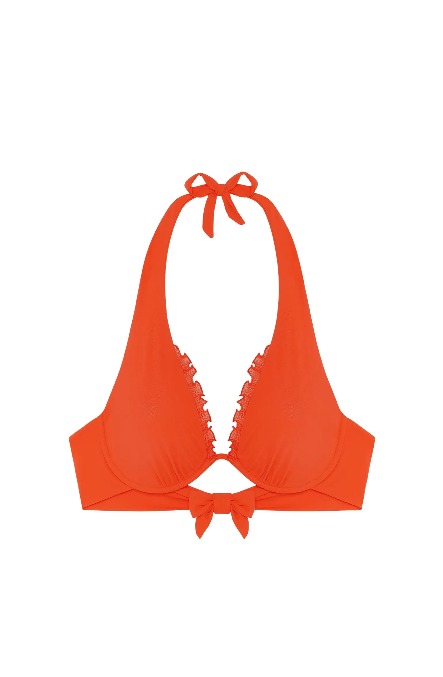 Le haut de maillot de bain SARY à armature unique, création iconique de Pain de Sucre, donne du volume à la poitrine en assurant un confort absolu. Ses bonnets se parent de volants en mousseline plissée pour dynamiser le décolleté. Ses bretelles se nouent derrière la nuque et dans le dos pour s’ajuster à toutes les morphologies. Un orange moderne, intensément vitaminé.