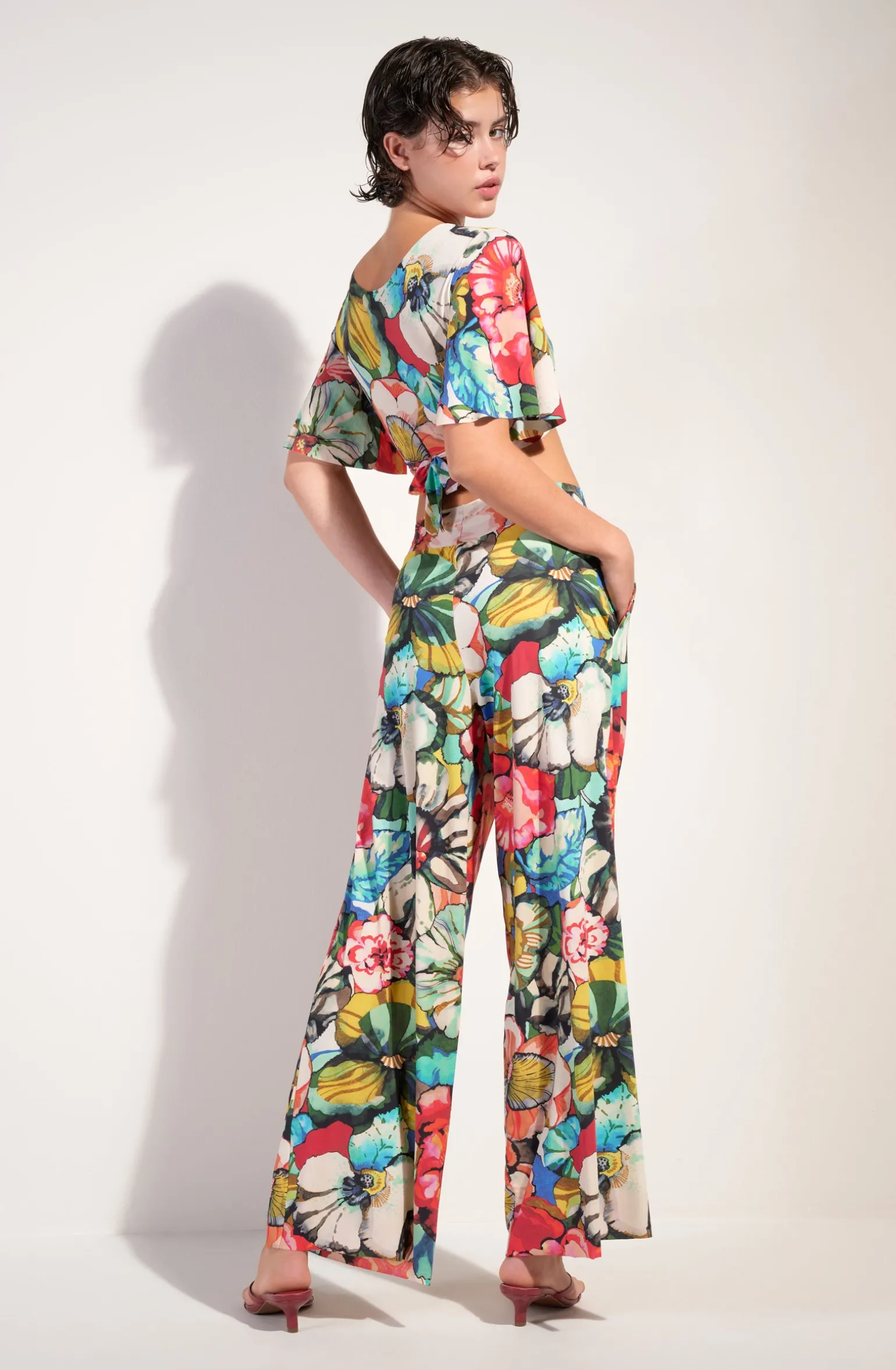 Avec TAINY, le crop-top, effet cache-cœur, fait son retour sur les pavés comme à la plage. Avec sa coupe ajustée aux manches papillon, ce top à nouer, devant ou dans le dos, couvre, tout en légèreté, la peau des rayons du soleil. L’imprimé Flower, une nature exubérante où les fleurs aux couleurs chatoyantes incarnent l’esprit Flower Power. Une invitation à embrasser la vie…