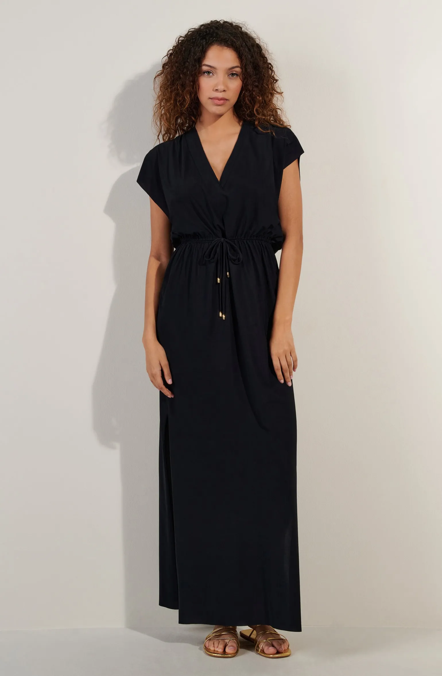 Longue et ample, la robe en voile léger TAYA offre une silhouette gracile. Les emmanchures flottantes et les fentes sur les côtés donnent une sensation de fraîcheur et de liberté totale. Le noir, une couleur intemporelle et toujours élégante.
