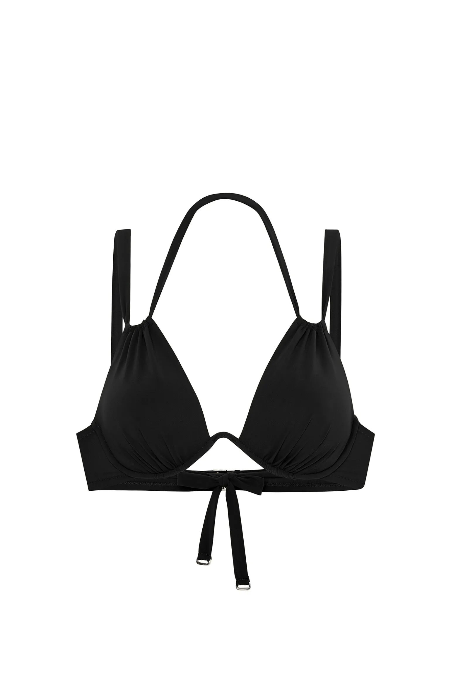 Avec son armature unique, dégagée entre les bonnets, le haut de maillot de bain VALEA est un modèle iconique indémodable. Moderne et raffiné, il se noue dans le dos et derrière la nuque pour s’ajuster parfaitement à la silhouette. Le noir, couleur intemporelle, toujours élégante.
