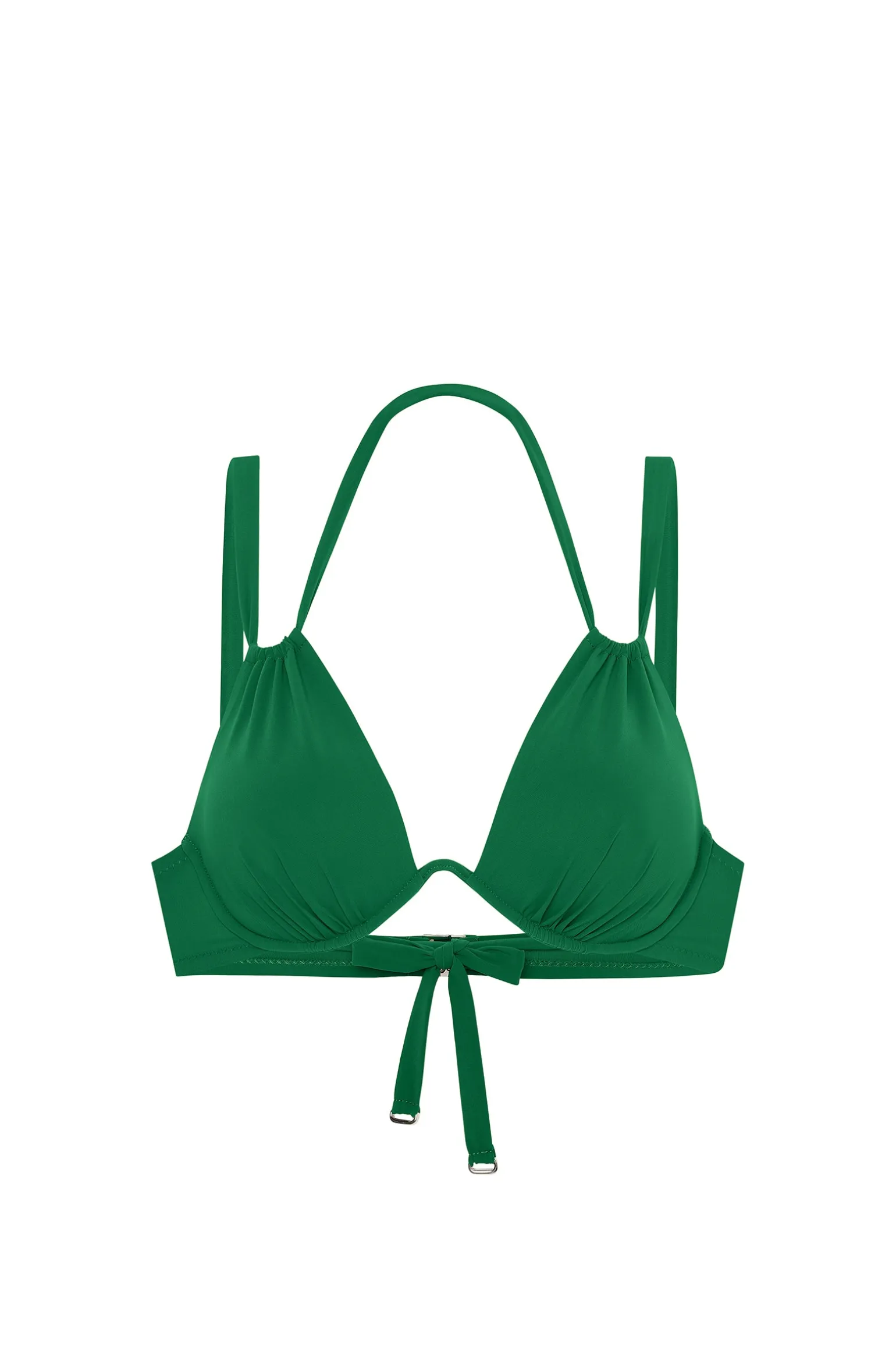 Avec son armature unique, dégagée entre les bonnets, le haut de maillot de bain VALEA est un modèle iconique indémodable. Moderne et raffiné, il se noue dans le dos et derrière la nuque pour s’ajuster parfaitement à la silhouette. Jade, un vert prononcé intensément doux et lumineux.