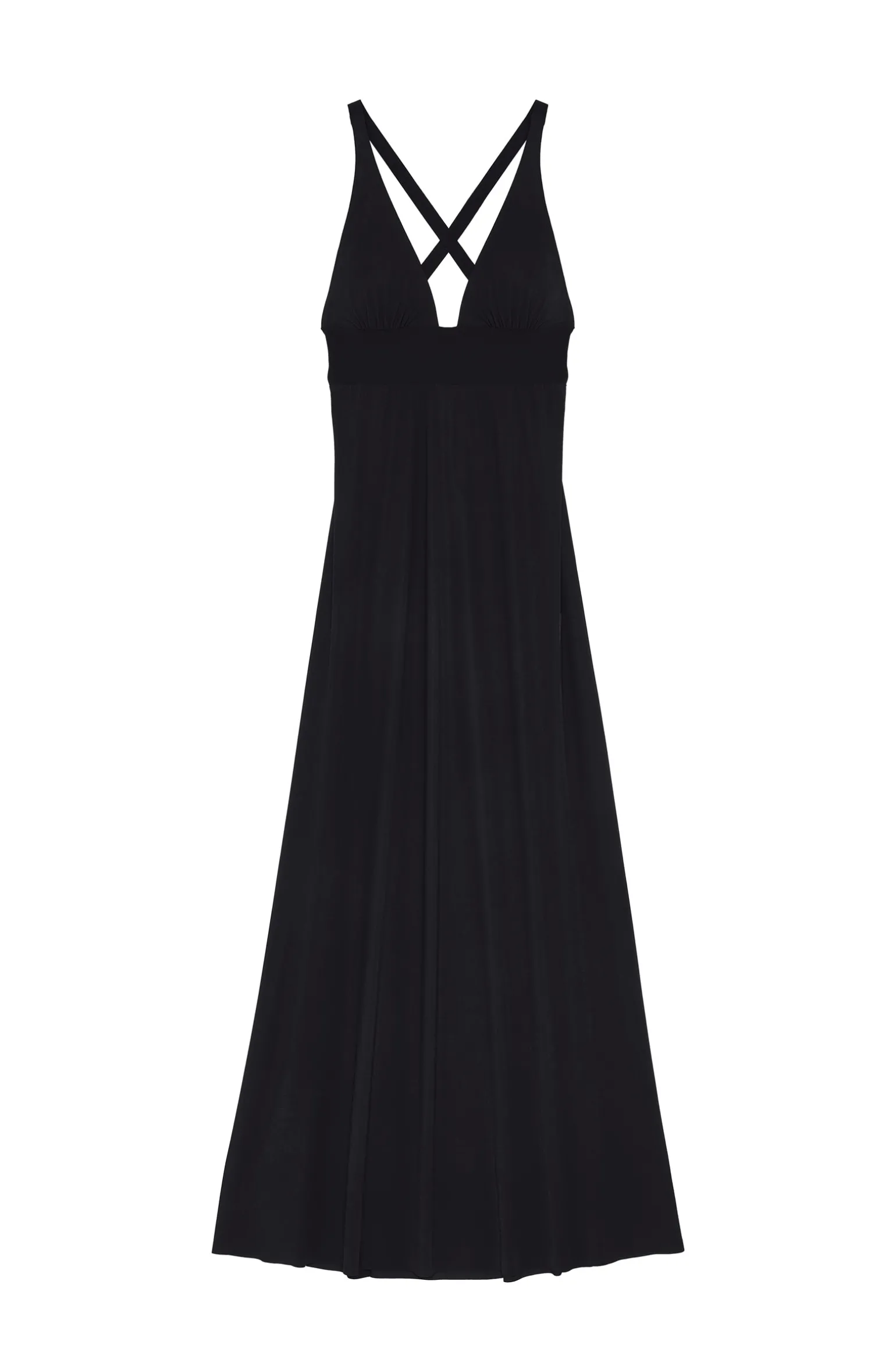 Révélant un dos nu sous de délicates bretelles croisées, la longue robe VICK joue des volumes avec une remarquable élégance. Le bas, fluide et évasé, inspire le confort. Sur le buste, la coupe ajustée souligne sublime la taille et offre un décolleté vertigineux. Indémodable, le noir met en valeur toutes les morphologies.