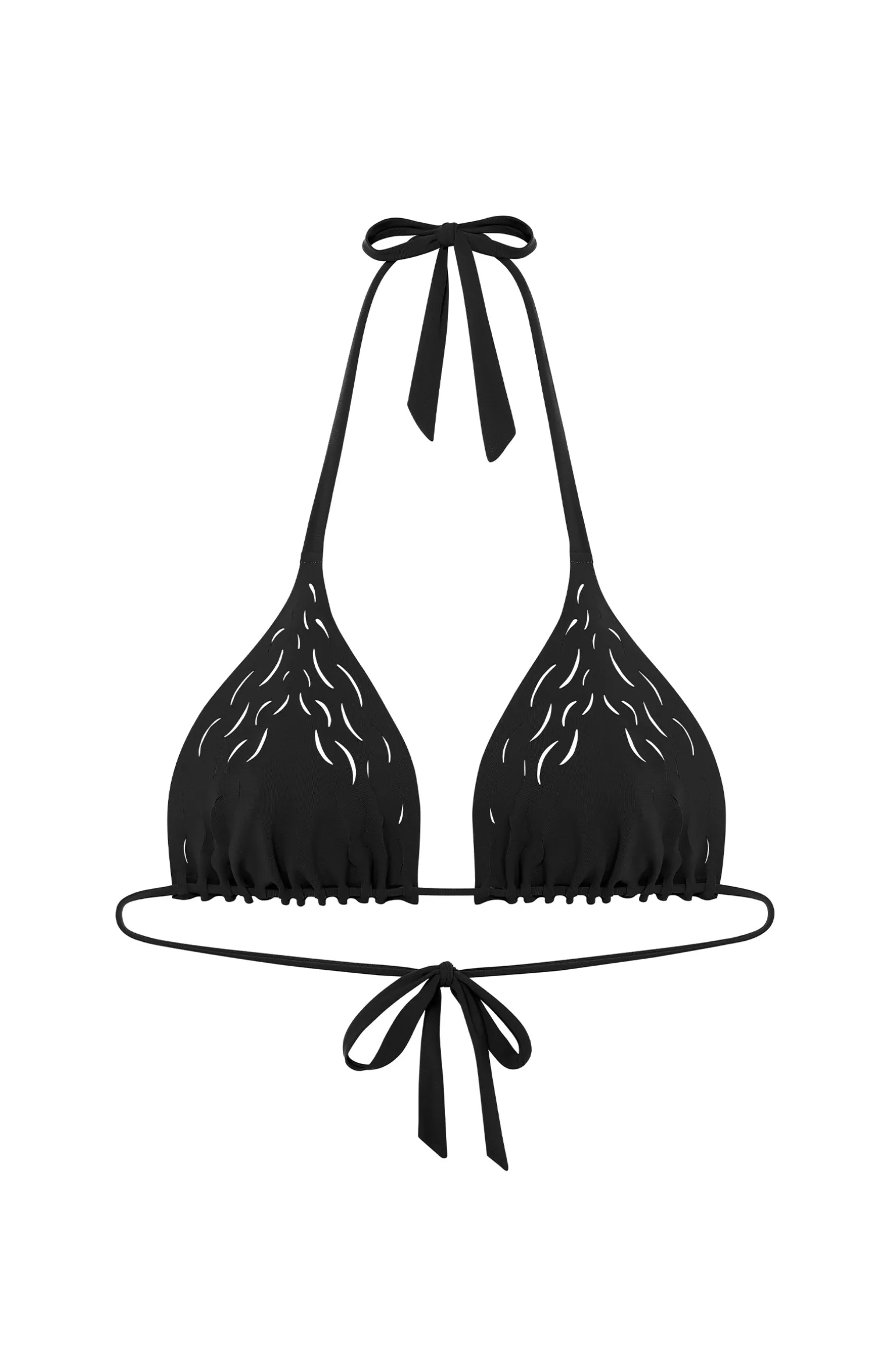 Avec son lien coulissant sous poitrine, le maillot de bain triangle WOOD s’ajuste à toutes les silhouettes. Dans un esprit couture, moderne et créatif, ce haut affiche des découpes laser créatives, rappelant avec douceur les ondes marines. Le noir, couleur intemporelle et toujours élégante.
