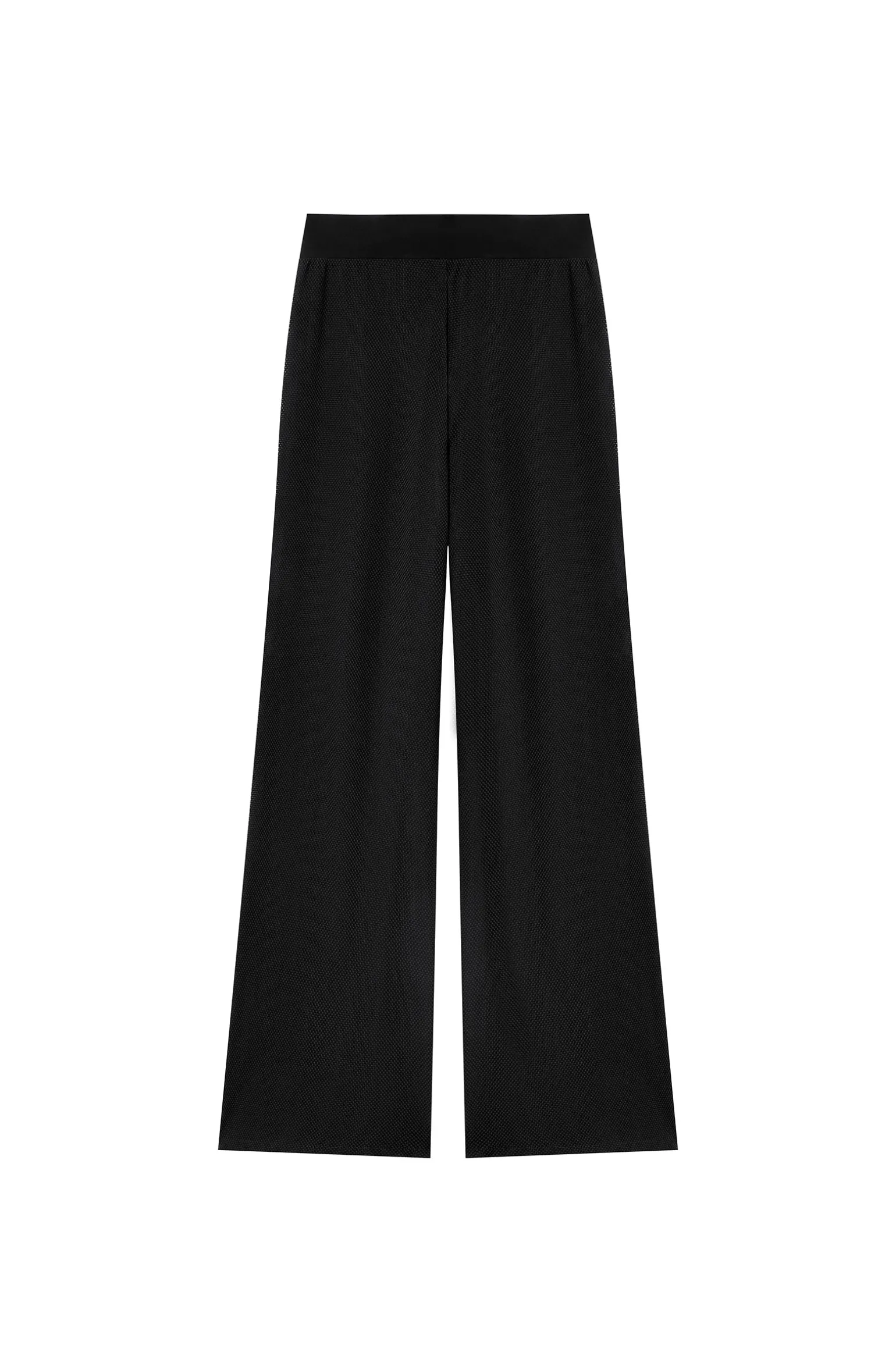 La résille transparente du pantalon ample YARA habille la silhouette dans un jeu de transparence moderne et singulier. La large ceinture élastiquée en bonded assure confort et maintien. Le noir, une couleur intemporelle et toujours élégante.