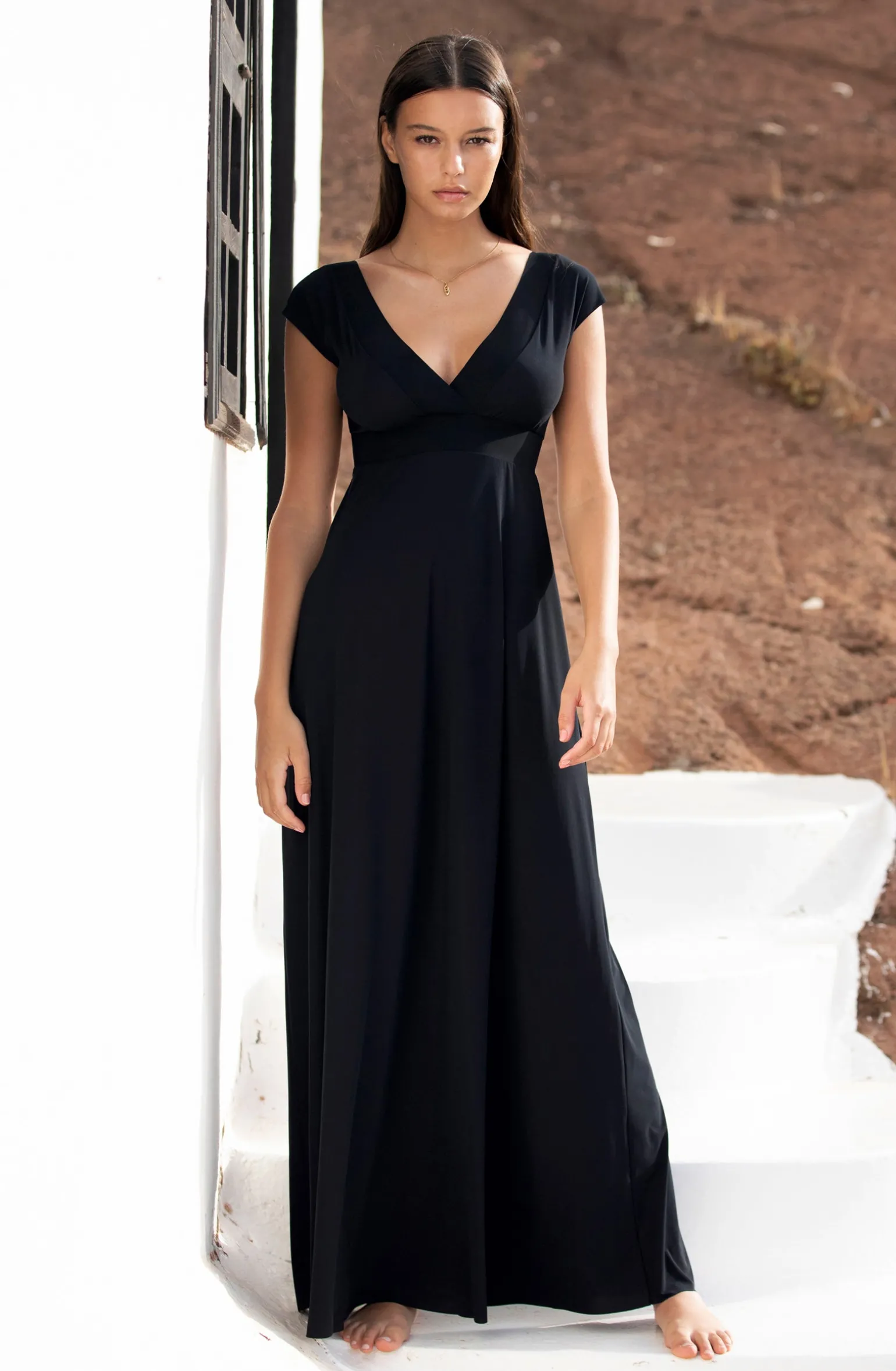 Avec ses profonds décolletés en V et ses petites manches, la robe longue ZAELIE noire offre une silhouette sculpturale. Ajustée à la taille et évasée en bas, cette robe monochrome est un essentiel qui se porte en toute occasion. Indémodable et toujours élégant, le noir met en valeur toutes les morphologies