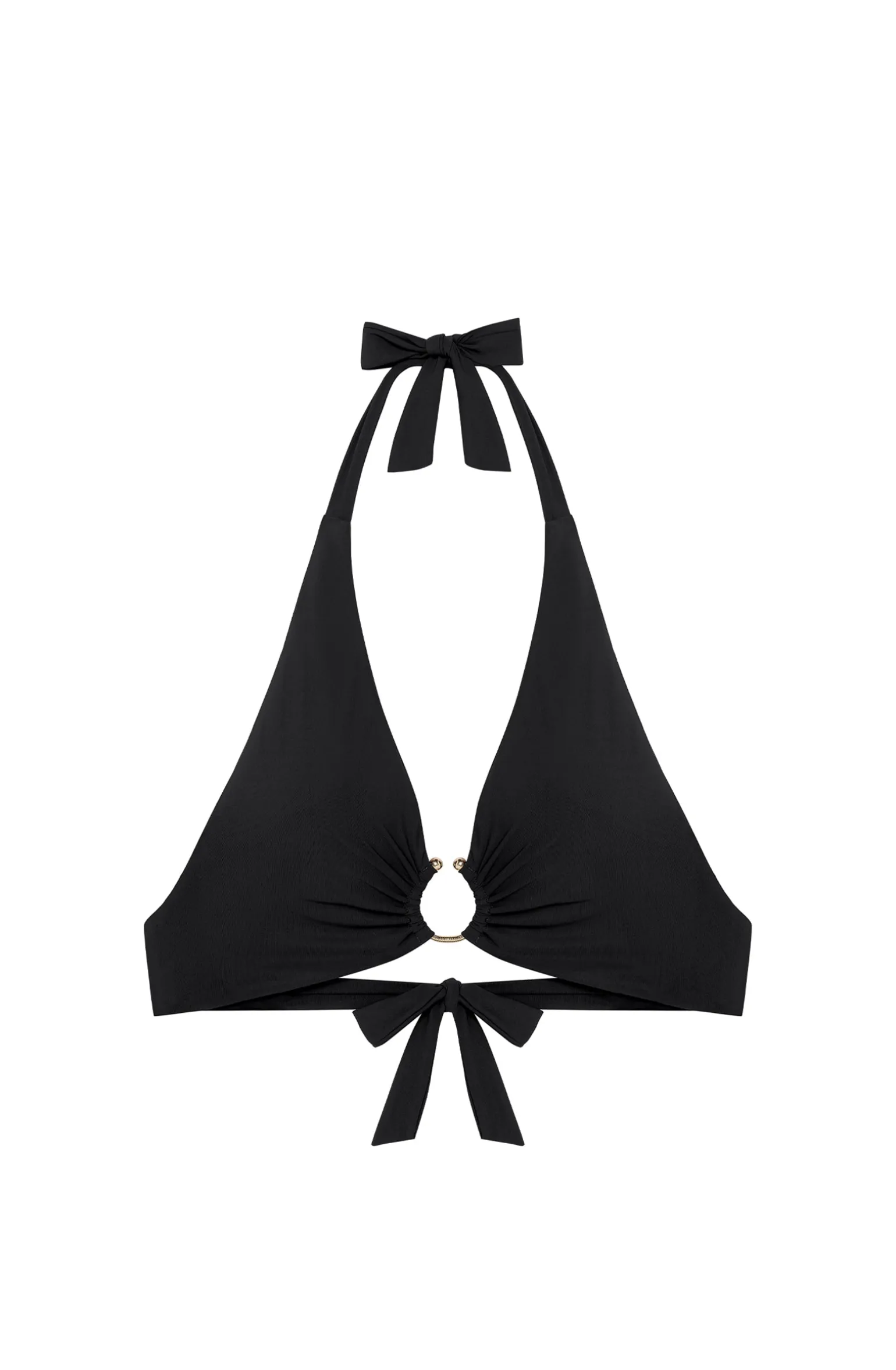 Le haut de maillot ANNAE épouse les formes avec délicatesse. Ses larges triangles se drapent élégamment autour d’un bijou en zamac argenté. Une association raffinée qui dynamise le décolleté