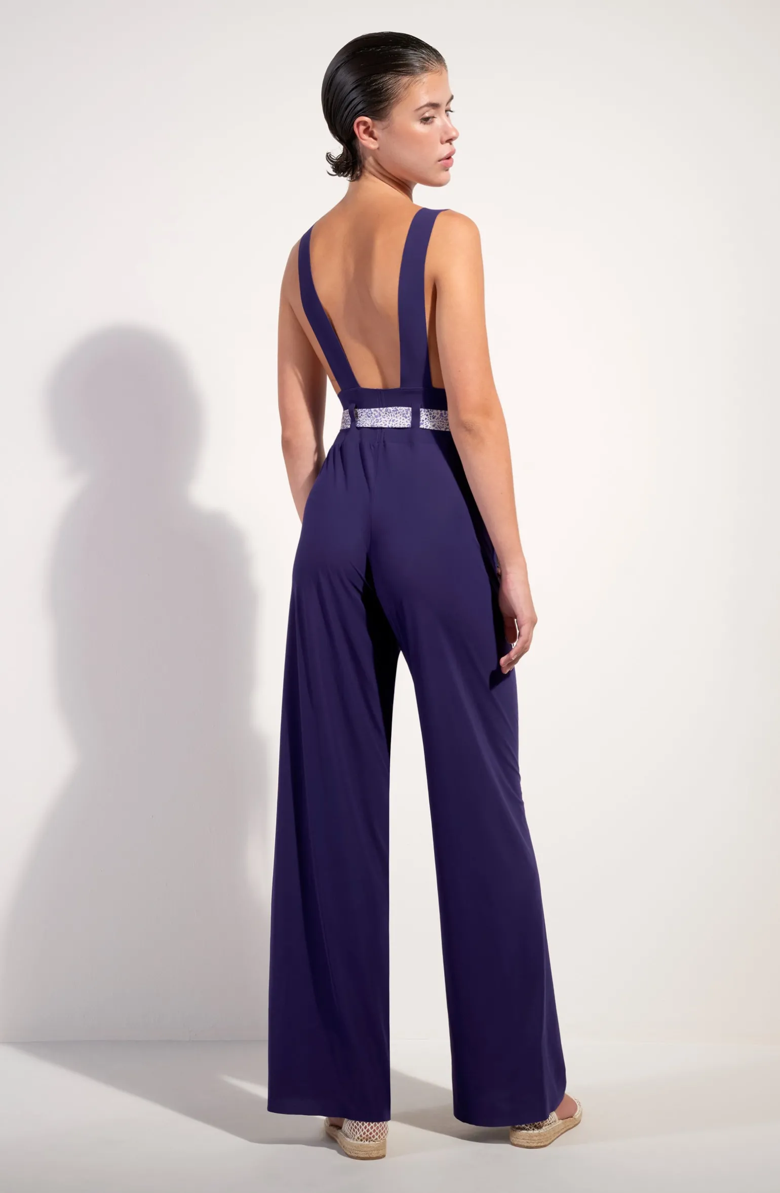 La salopette CIRA associe les matières emblématiques de Pain de Sucre dans un équilibre parfait, entre élégance et liberté. Le haut en bonded se pare de deux larges bretelles à boutonner. Le bas en voile léger, ample et fluide, habille sans contraindre. Purple, un coloris subtil et affirmé, sur des nuances violet indigo.