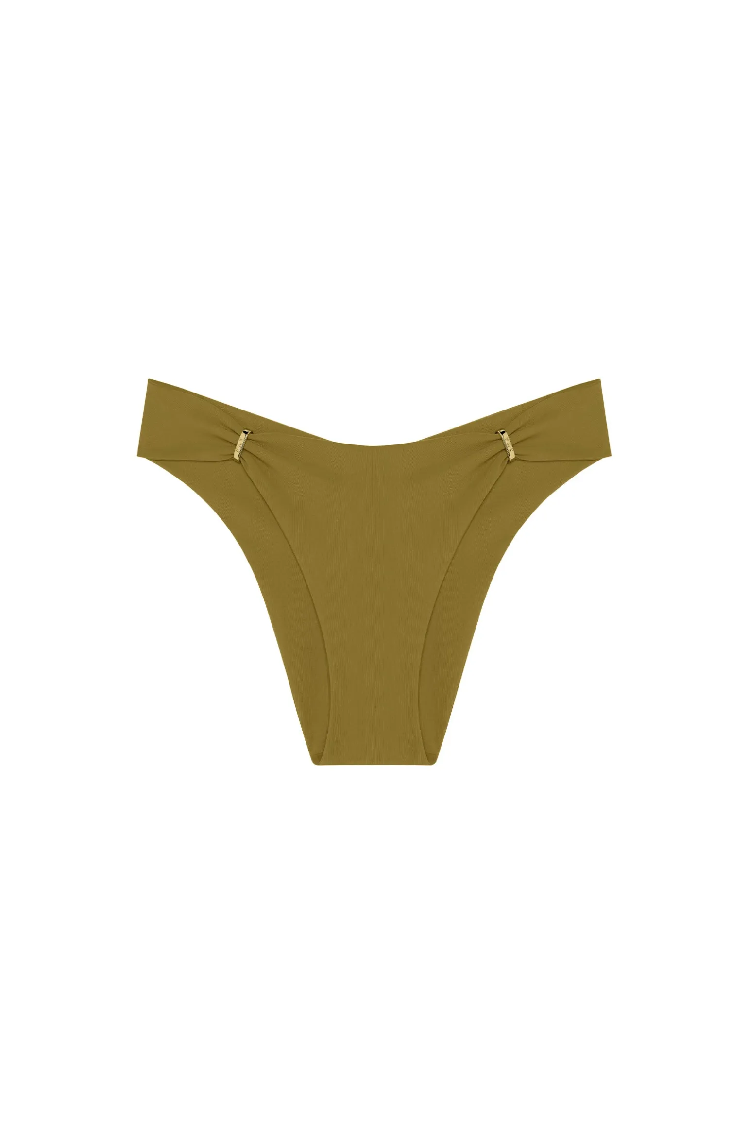 Avec ses anneaux coulissants argentés, le bas de maillot CLAUDIE se transforme avec éclat. Les bagues se placent devant pour une culotte couvrante, tout en élégance. Pour une silhouette plus élancée et un bronzage parfait, les anneaux se positionnent à l’arrière créant un tanga très échancré. Bronze, une teinte minérale authentique, combinaison de jaune-vert.