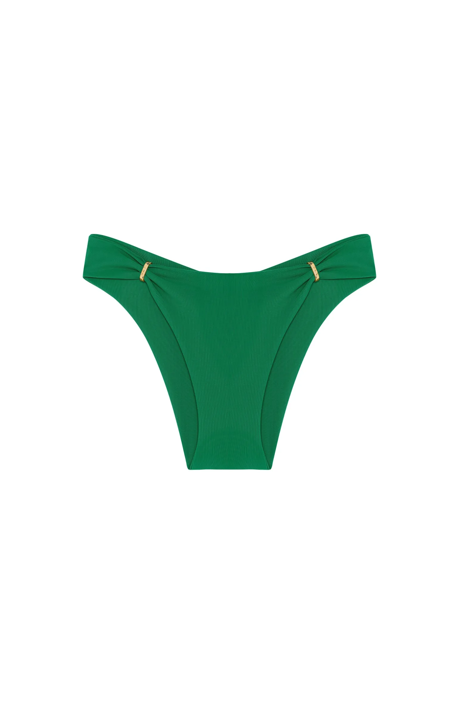 Avec ses anneaux coulissants, le bas de maillot CLAUDIE se transforme au gré des envies. Placés devant, la culotte de bain couvrante se pare d’élégance. Pour un bronzage parfait et une silhouette élancée, ils se positionnent à l’arrière pour un bas très échancré, effet tanga. Jade, un vert prononcé intensément doux et lumineux.