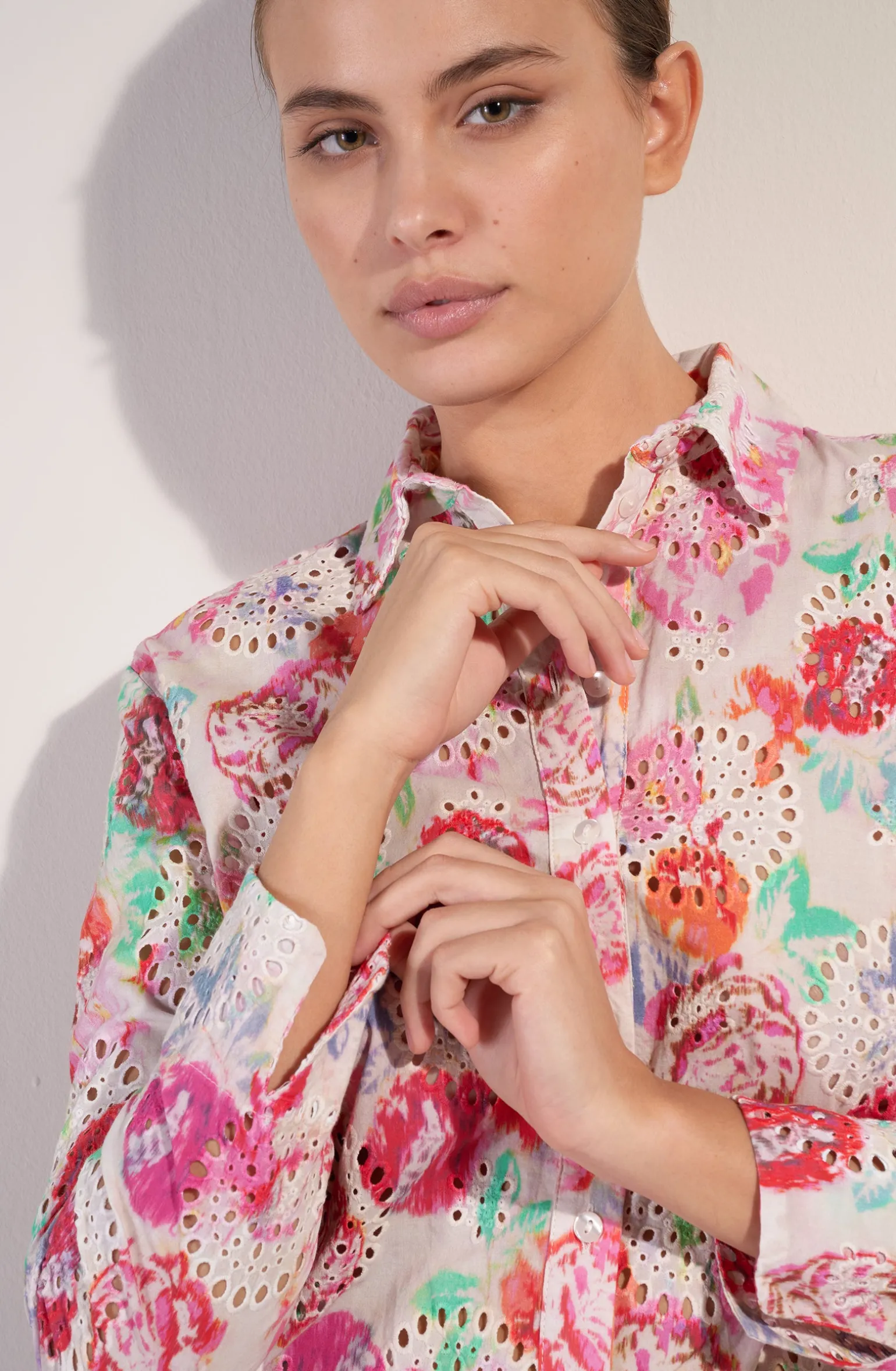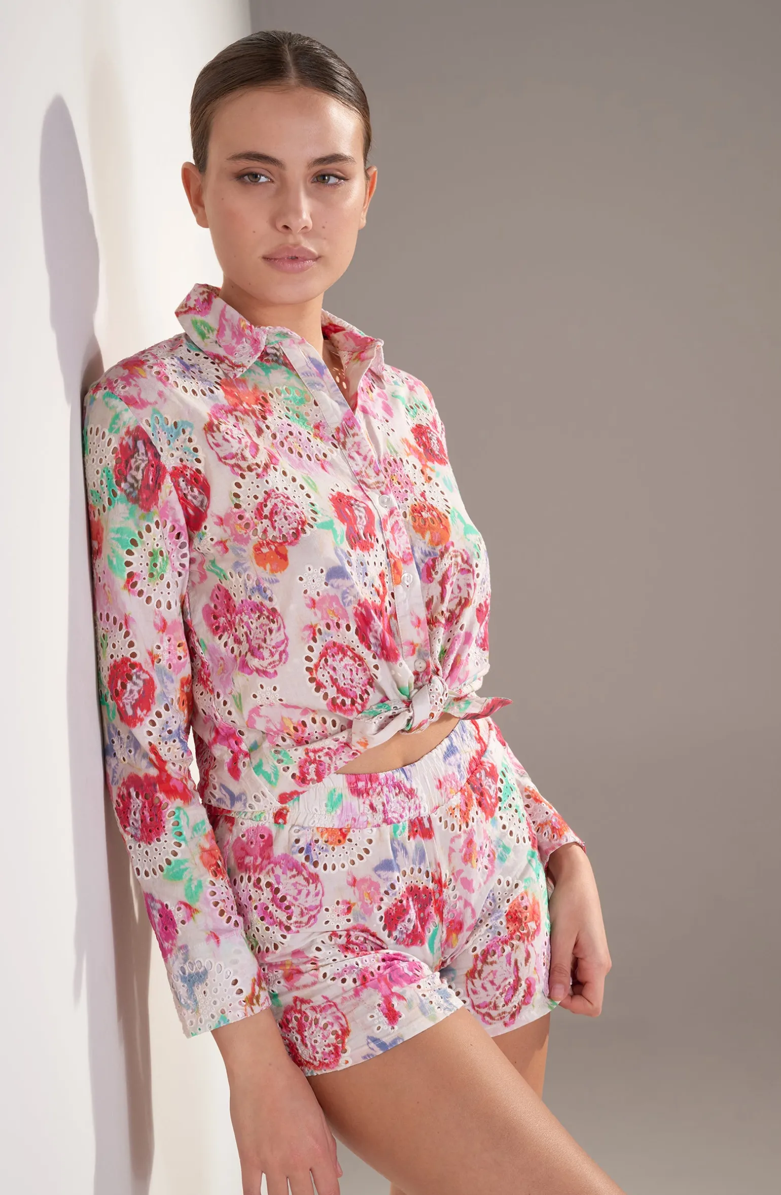- Broderie anglaise avec imprimé GARDEN motifs fleuris délicats