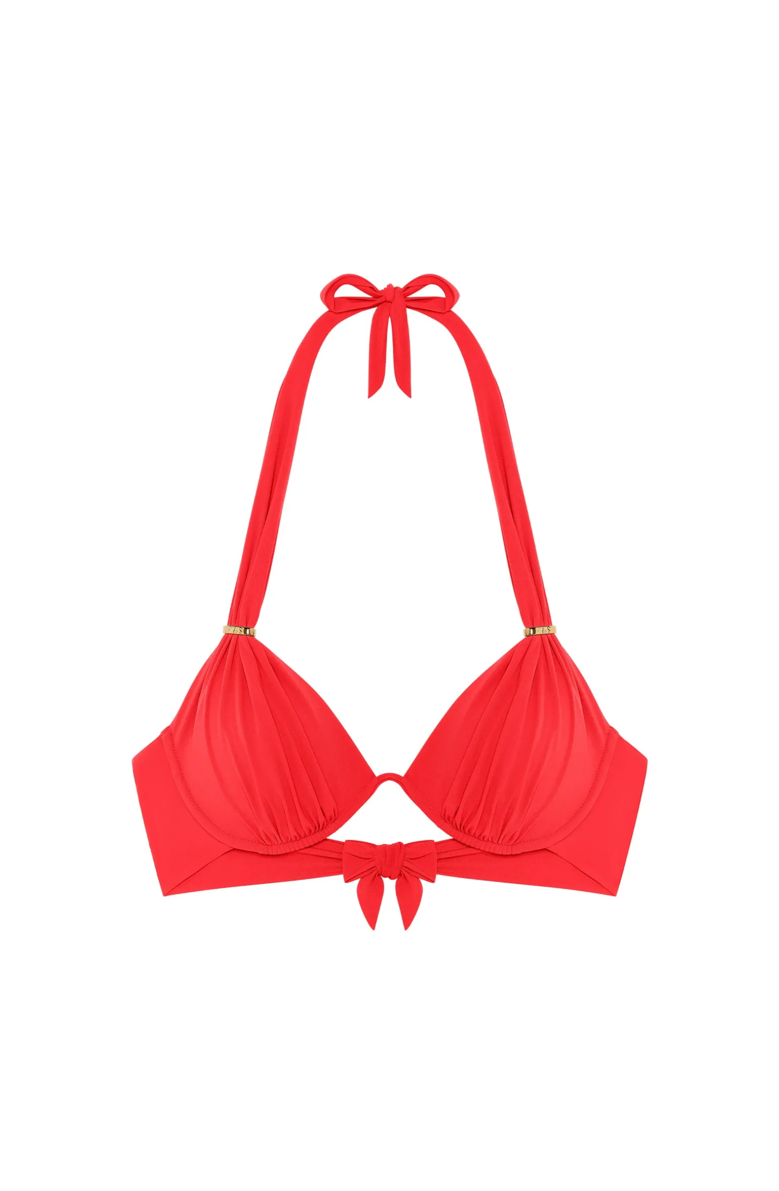 Avec son armature unique, dégagée entre les bonnets, le haut de maillot de bain FABIA est un modèle iconique intemporel. Sa coupe moderne et raffinée s’ajuste à toutes les morphologies. Les fronces sous poitrine donnent du relief et les anneaux métalliques le long des bretelles permettent de jouer sur la profondeur du décolleté.
