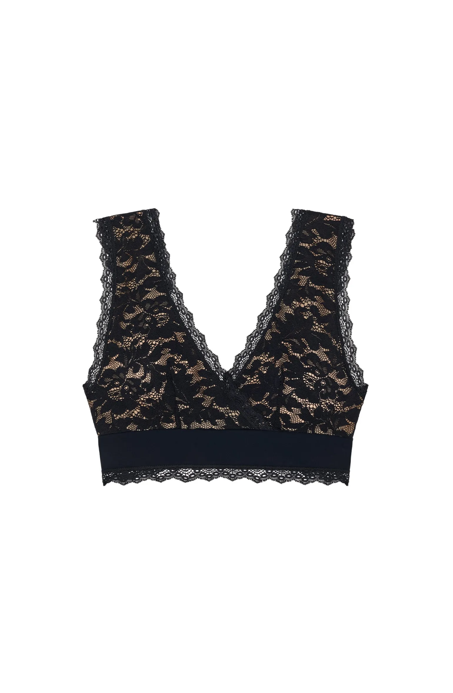 La coupe effet cache-cœur du soutien-gorge Girby lui donne une allure de crop top. Sous poitrine, une large bande en bonded maintient le décolleté. Entièrement doublé de tulle, la dentelle française épouse les formes avec raffinement. Le noir, une couleur intemporelle et toujours élégante.