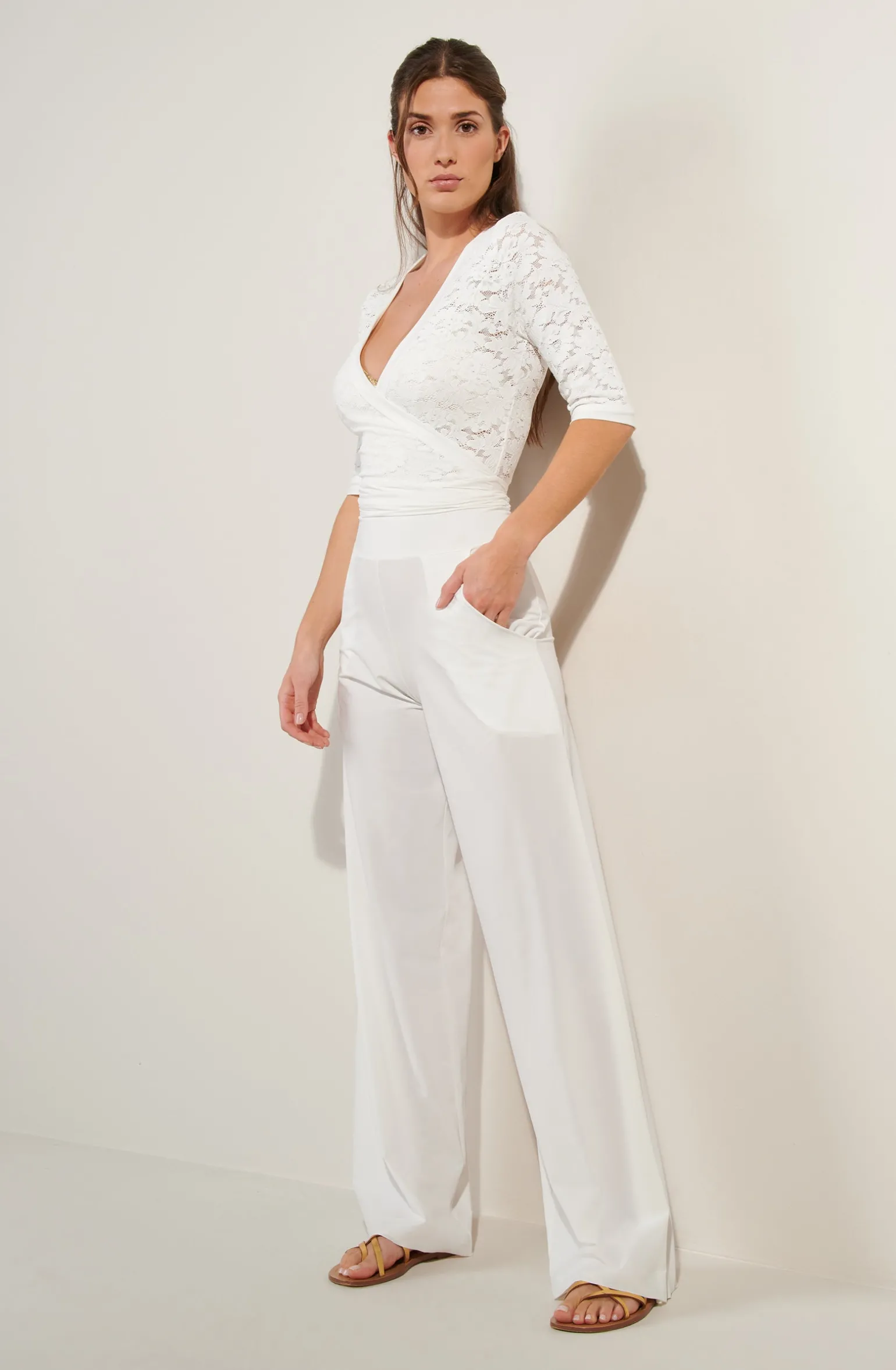 Le cache-cœur en dentelle française GLADYS se pare de finitions en voile sensitive. Le décolleté est sublimé et la taille ceinturée se noue pour s’ajuster parfaitement à la silhouette. Un blanc au sous ton chaud inspiré de l’écume des vagues.