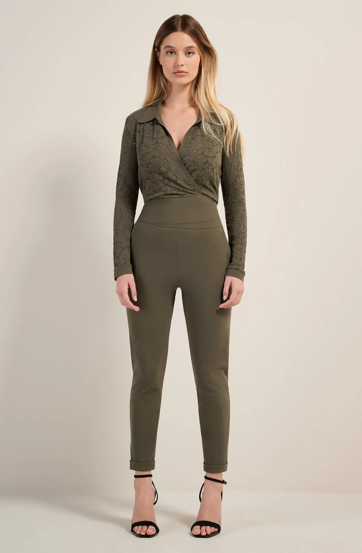 Le pantalon JAZZY revisite, l’intemporelle coupe ajustée du pantalon cigarette. Avec ses petits ourlets en relief et sa large taille élastiquée, ce pantalon tout confort se marie avec toutes les tenues. Lichen, une teinte organique, vert kaki.
