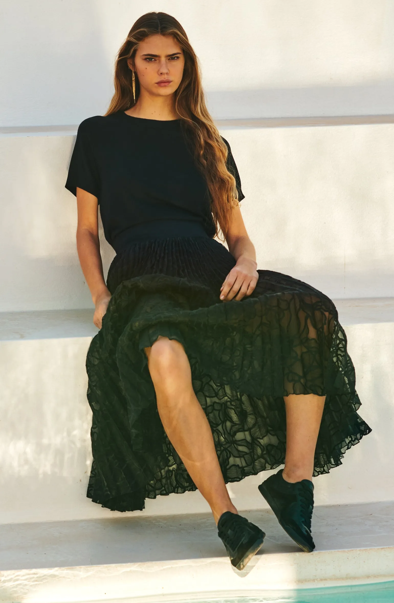 - Jupe longue plissée