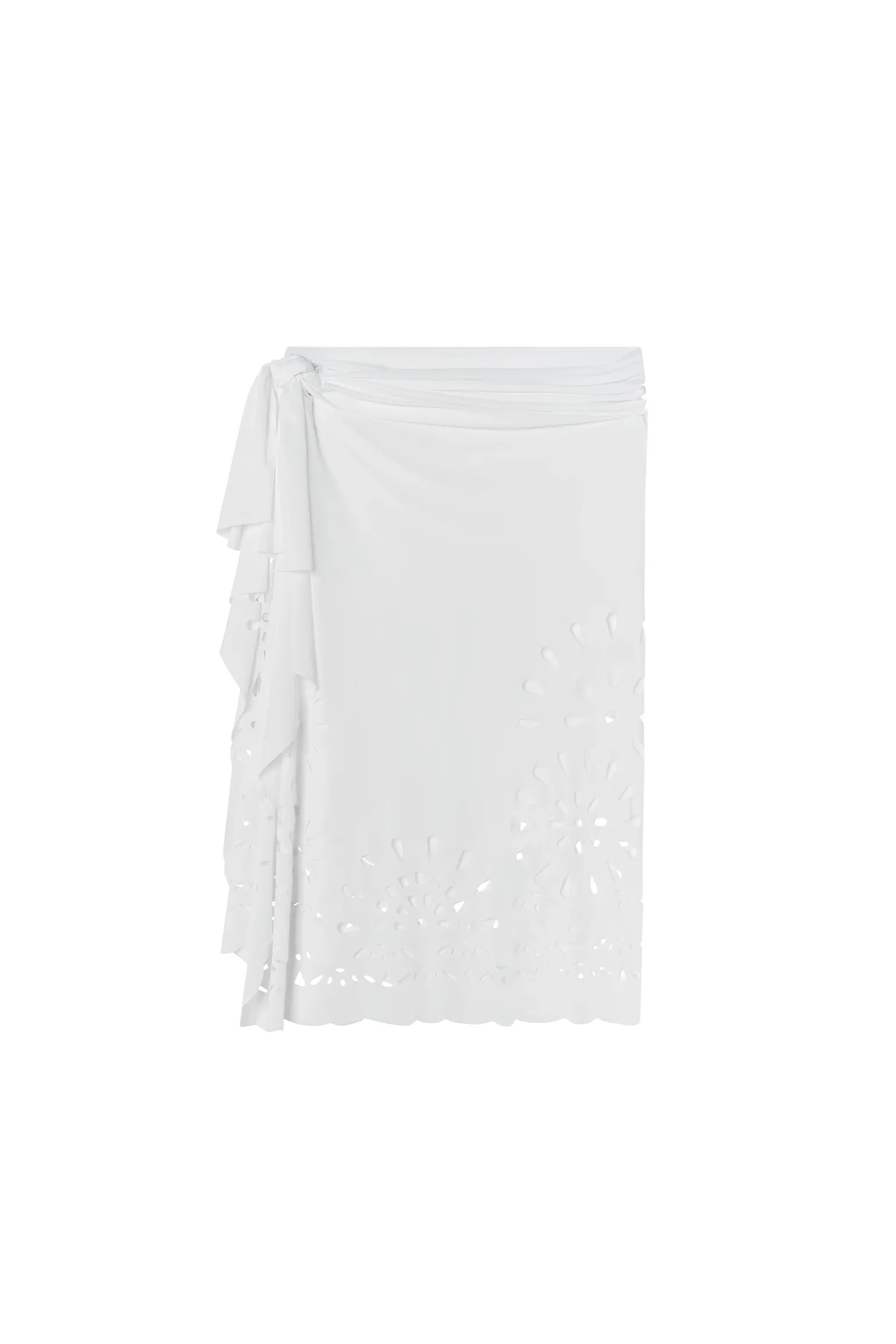 Avec ses fines découpes révélant des rosaces enchevêtrées, le long paréo KEYA est une pièce graphique qui donne de l’allure. Noué à la taille ou sur le buste, cet essentiel uni se porte en toute occasion. Pur et délicat, le blanc illumine le teint.