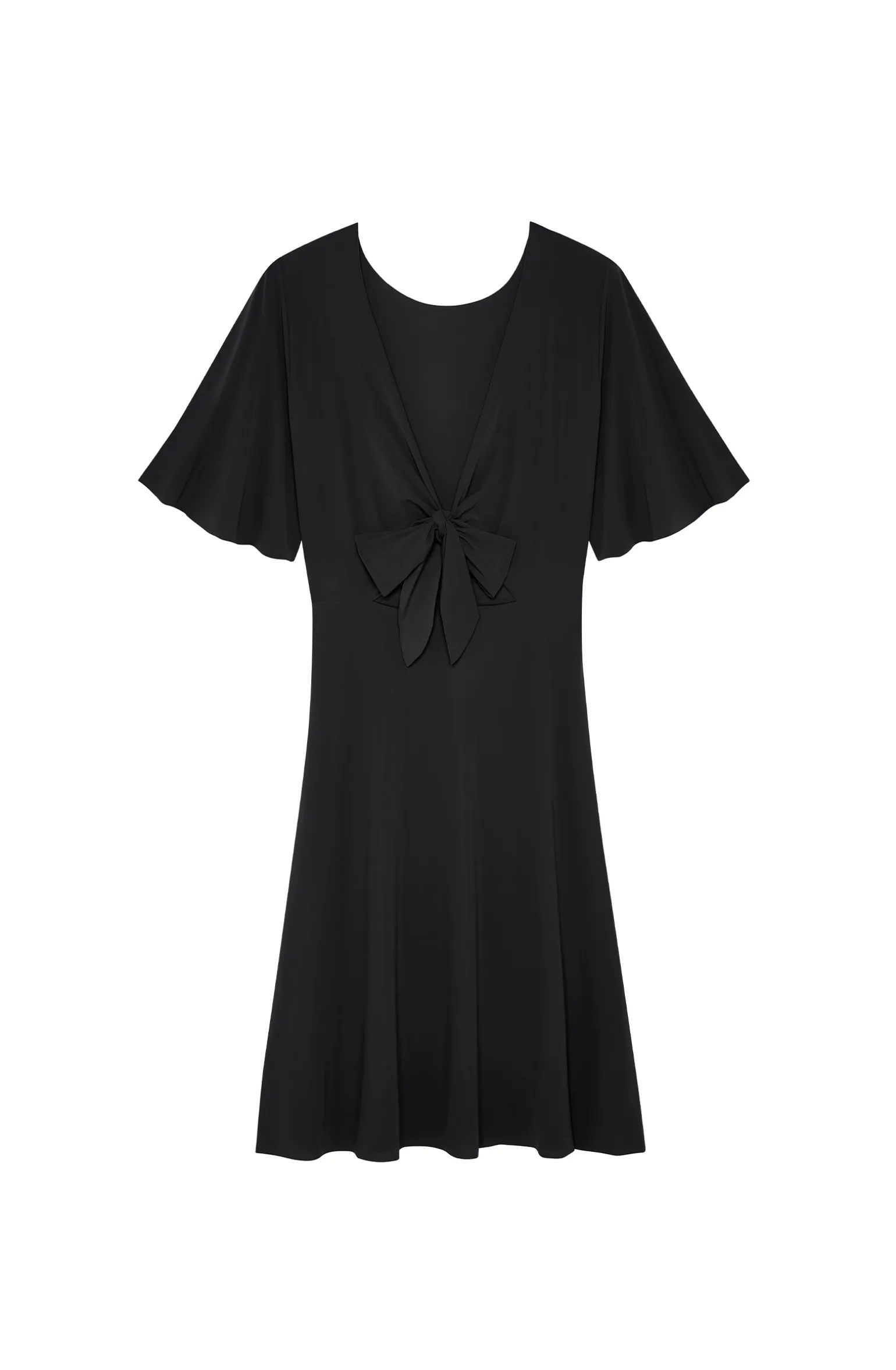 Avec ses petites manches papillon, la robe courte NATT, confectionnée en voile léger, est un joyau de légèreté. Elle se porte recto verso pour jouer des décolletés de son haut à nouer, effet cache-cœur. Le noir, couleur intemporelle, toujours élégante.
