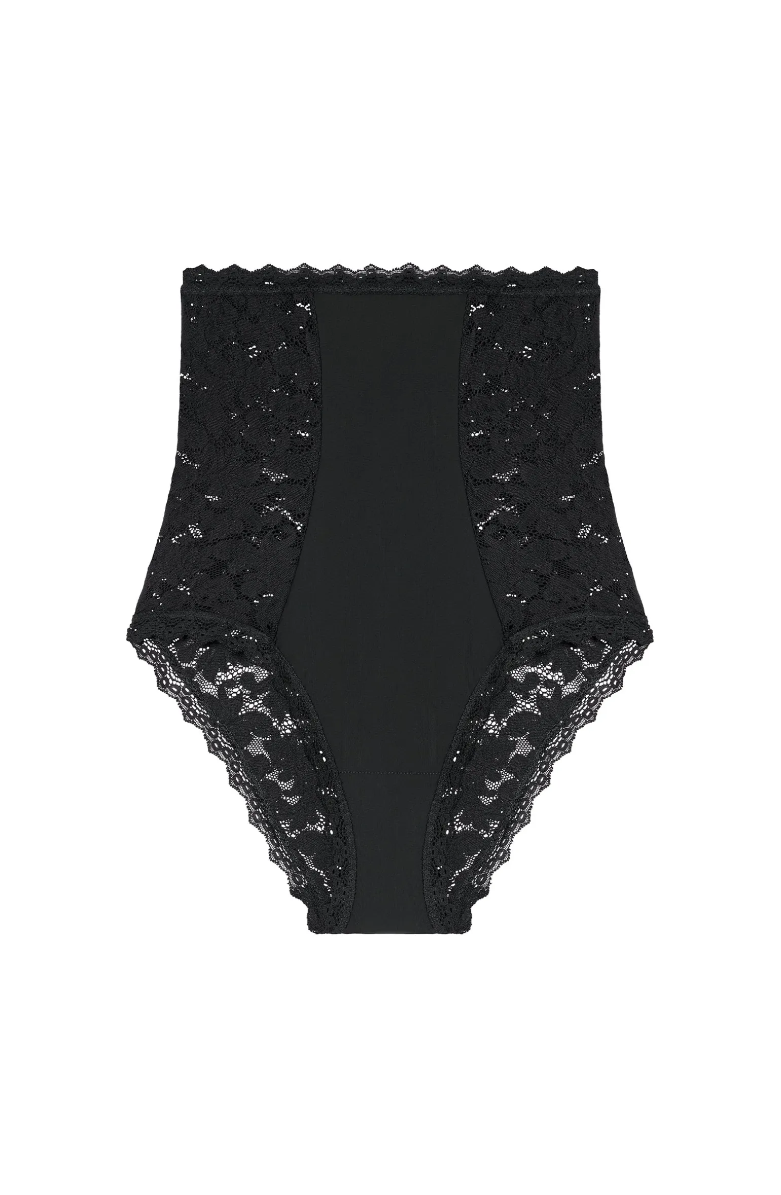 La culotte taille haute Nel, aux accents rétro, combine les matières emblématiques de la maison Pain De Sucre. La dentelle délicatement fleurie s’associe au bonded pour assurer le confort et affiner la silhouette. Le noir, une couleur intemporelle et toujours élégante.