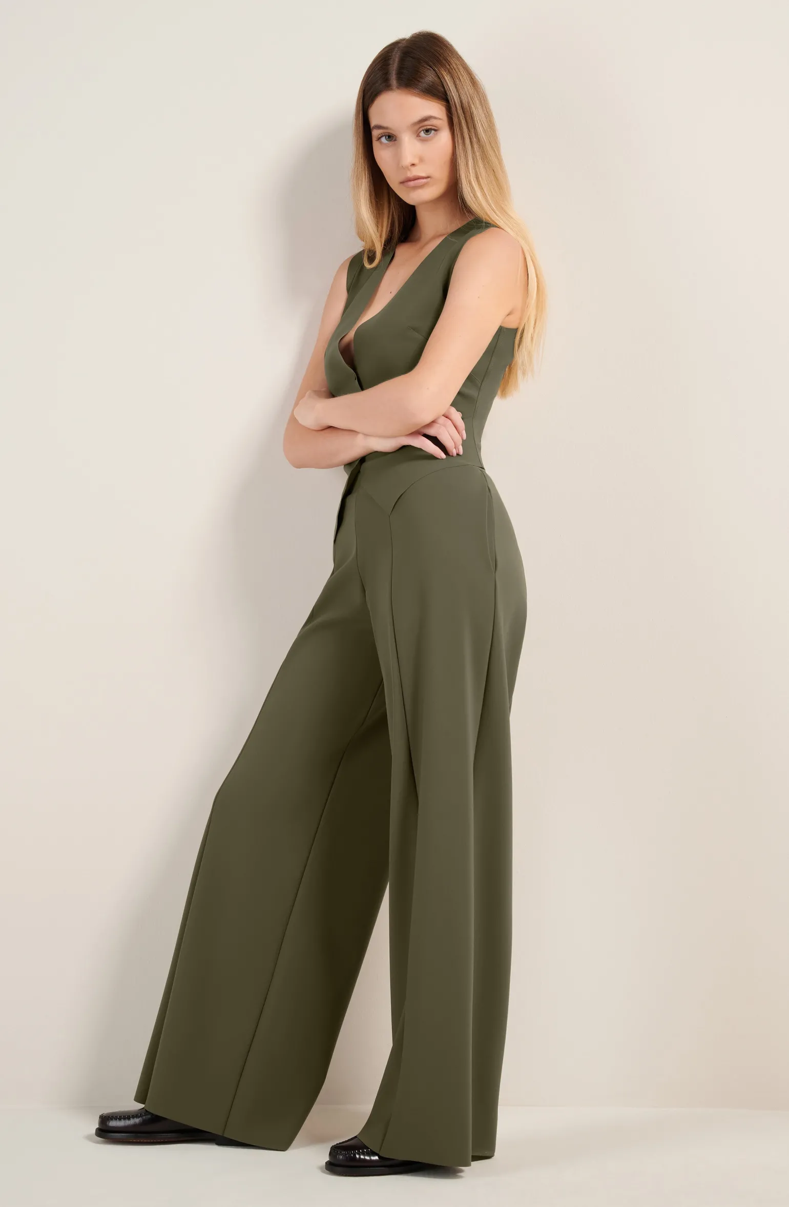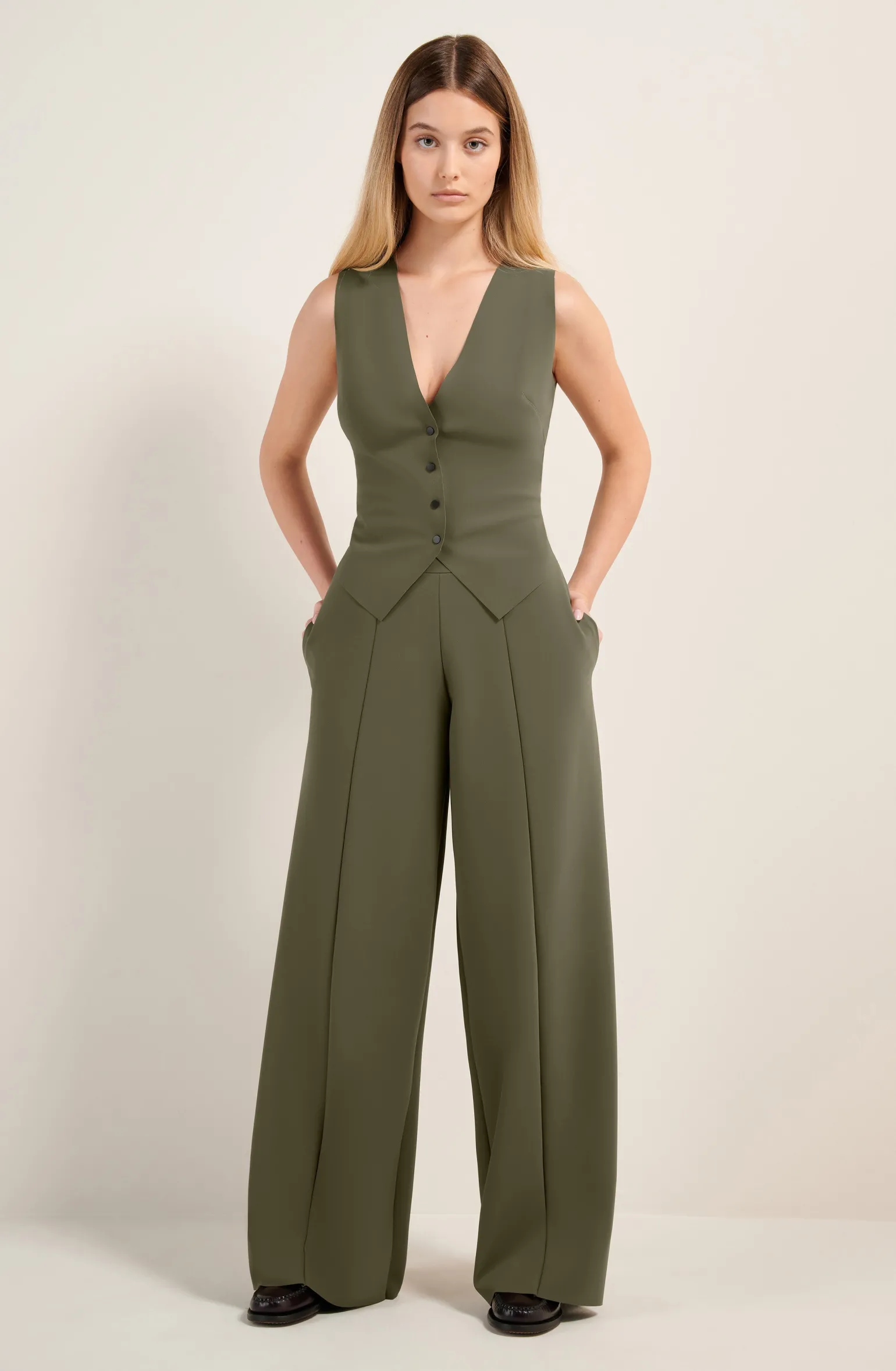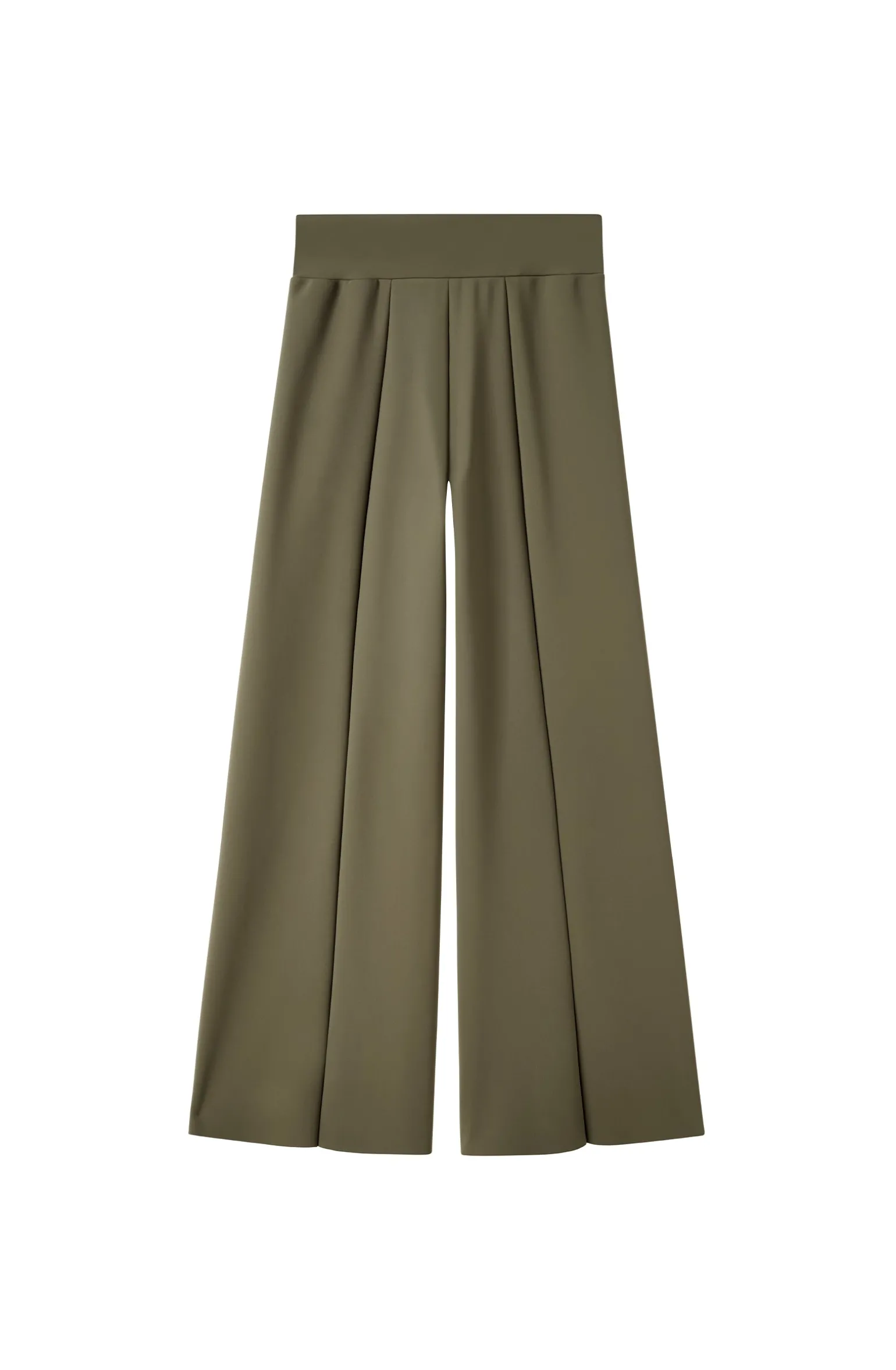 Avec sa coupe couture, le pantalon taille haute en Bonded PEGGY dévoile une coupe large et révèle une silhouette structurée, toute en fluidité. Avec ses discrètes poches fendues, cette pièce tout confort est un incontournable. Lichen, une teinte organique, vert kaki.