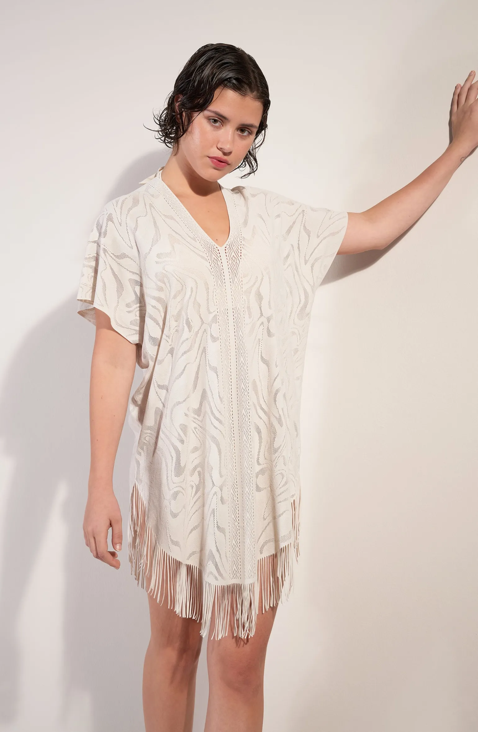 - Poncho à franges en dentelle couvrante