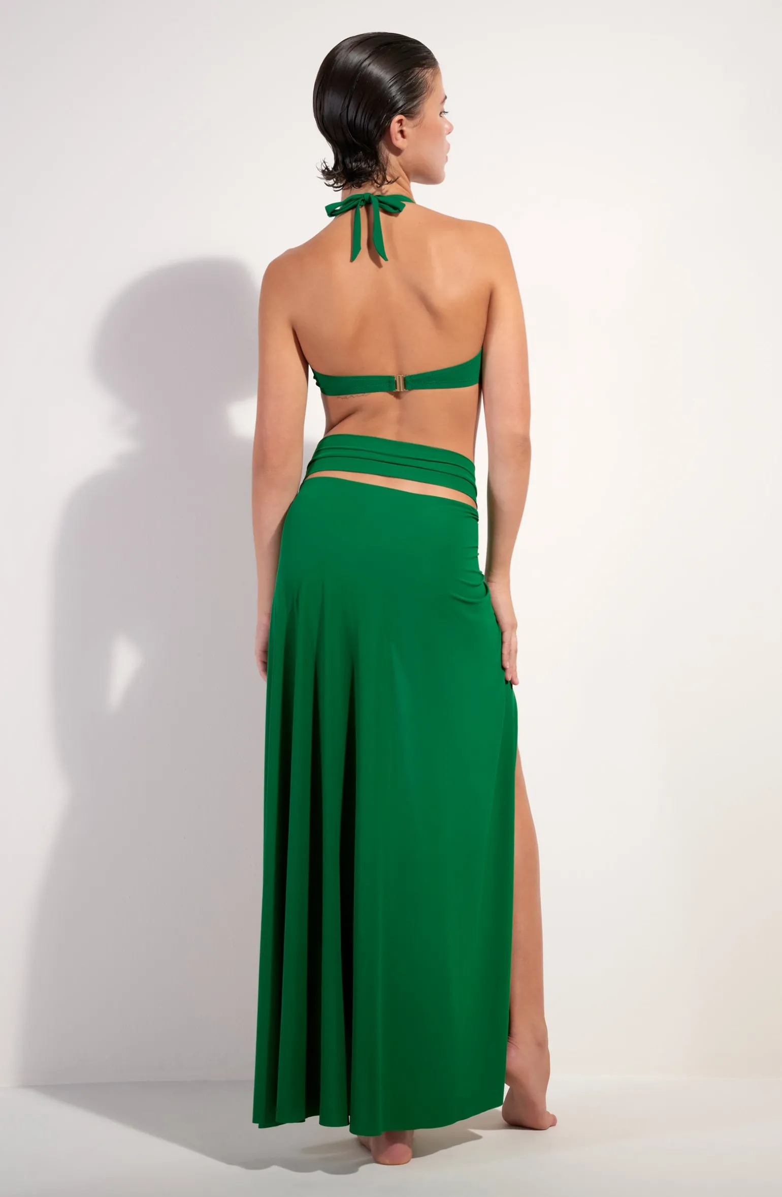 Agrémentée d’un anneau bijou, la jupe paréo PETRA change de style avec élégance. Version jupe, ses lanières s’attachent joliment autour de la taille. Elles se nouent autour des épaules pour une robe de plage bustier à l’allure très féminine. Jade, un vert prononcé intensément doux et lumineux.