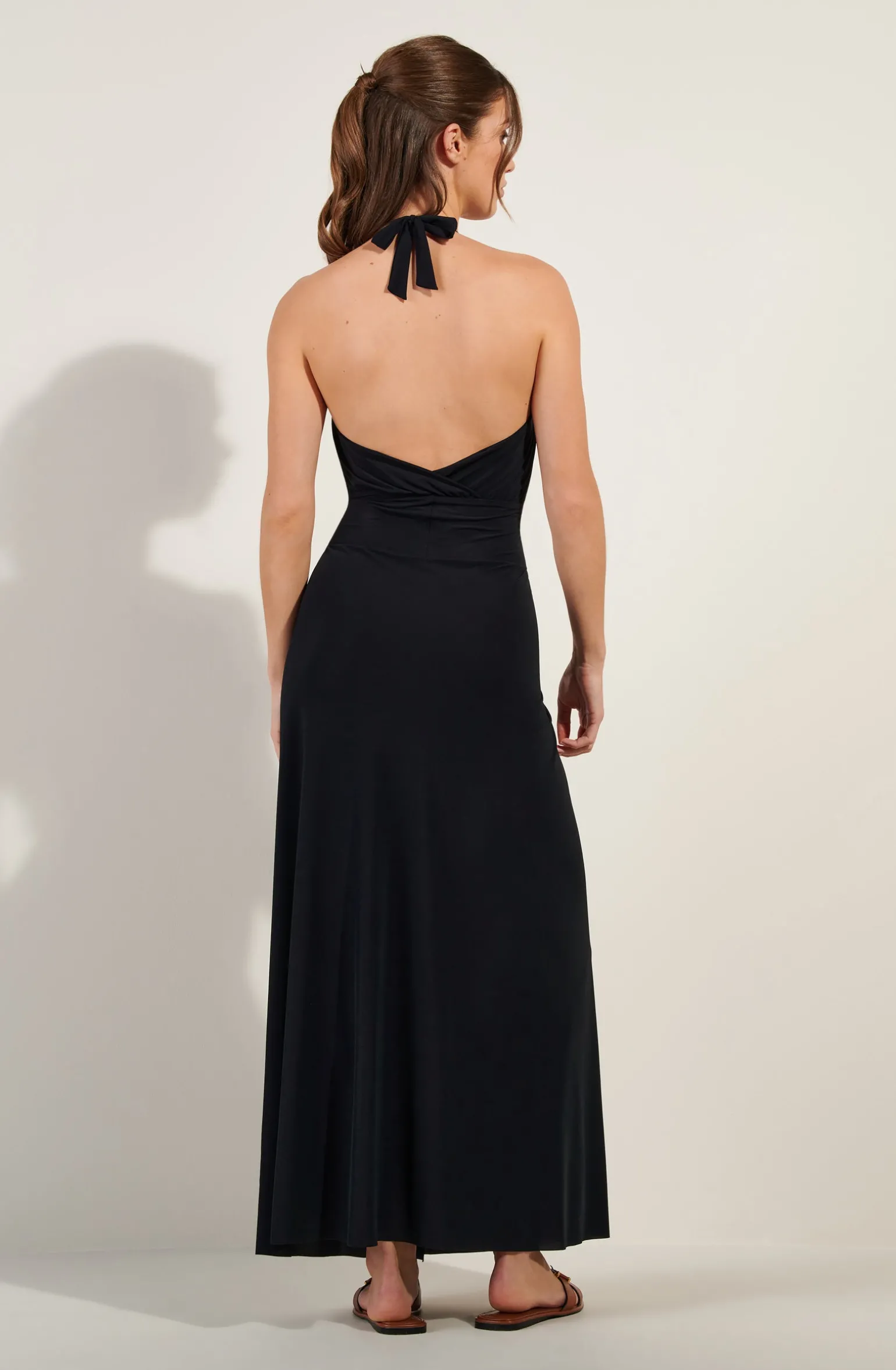 - Longue robe portefeuille dos nu en voile léger extensible