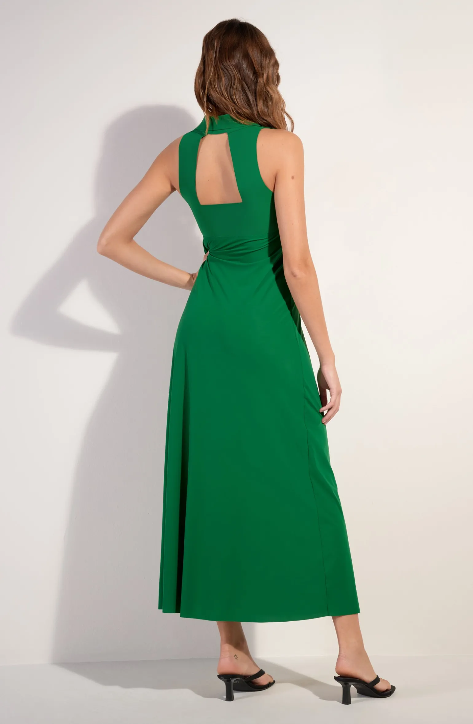 La robe longue fendue ROVA incarne l’élégance avec légèreté. Son haut, effet cache-cœur, se noue devant ou dans le dos et la couture sous poitrine met en valeur le décolleté. Avec son col chemise en bonded et son dos nu graphique, cette pièce est un incontournable. Jade, un vert prononcé intensément doux et lumineux.