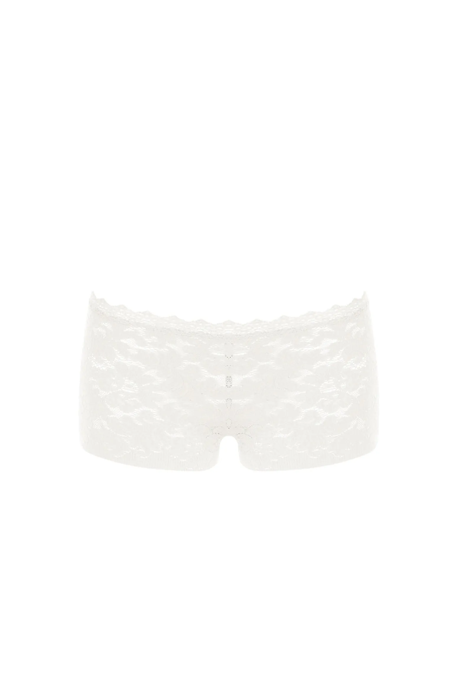 Shorty taille basse en résille de dentelle blanc écume. Finition frise de dentelle en tour de taille.