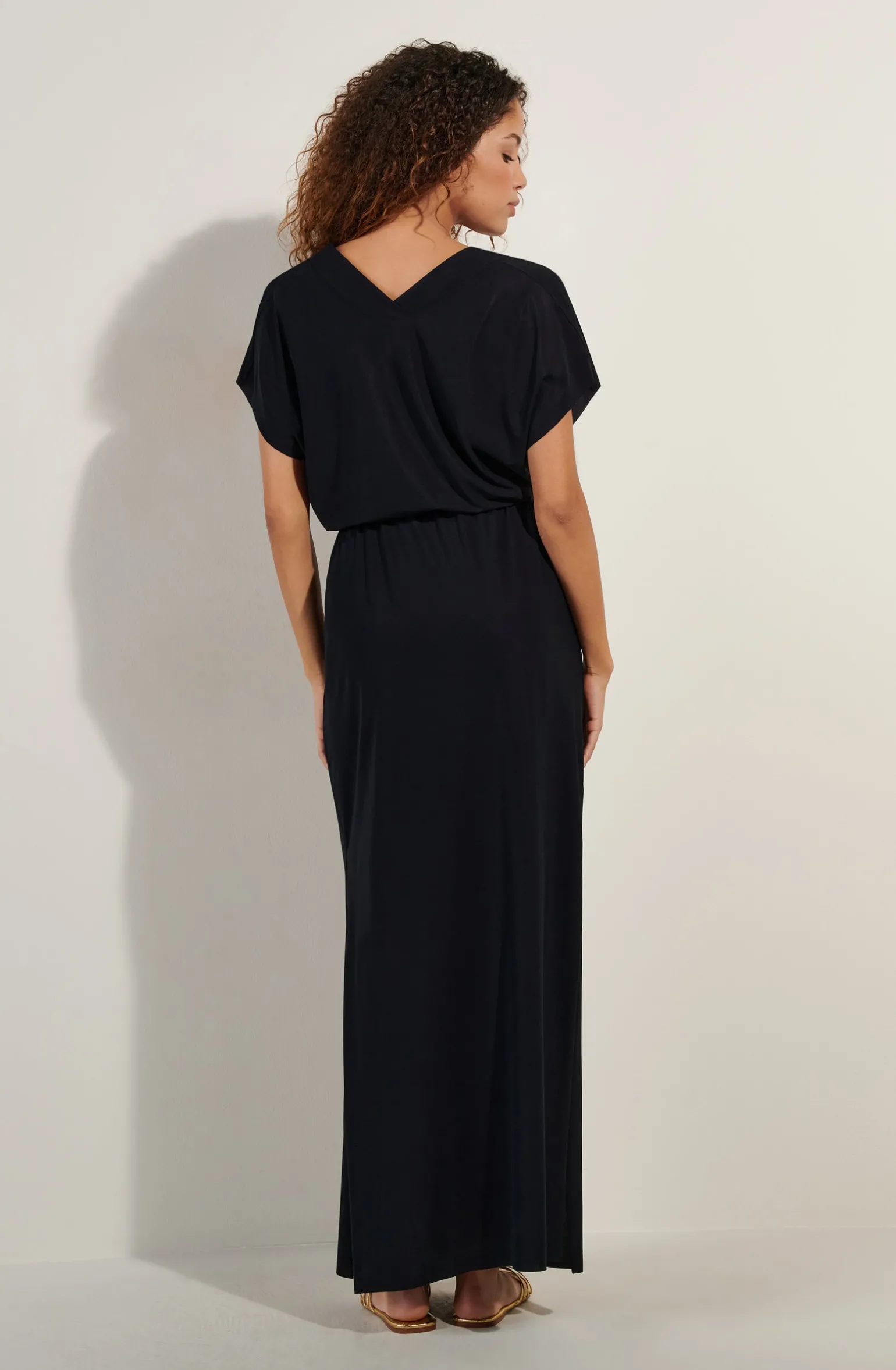 Longue et ample, la robe en voile léger TAYA offre une silhouette gracile. Les emmanchures flottantes et les fentes sur les côtés donnent une sensation de fraîcheur et de liberté totale. Le noir, une couleur intemporelle et toujours élégante.
