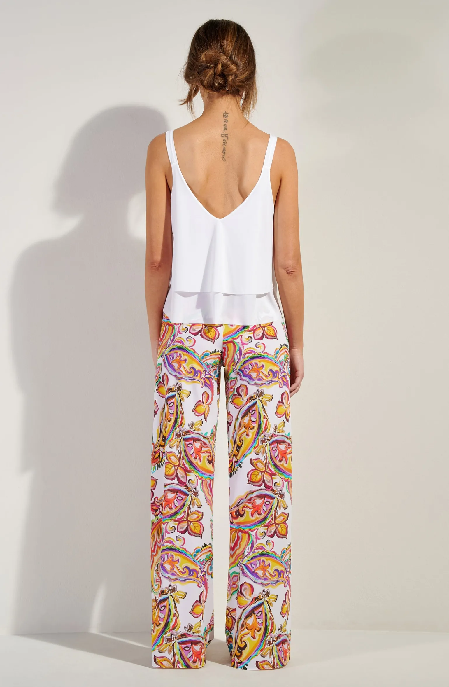 Simplicité des matières fluides et jeu de superpositions, le petit top TEA offre une silhouette toute en relief. Devant et dans le dos, de larges décolletés dynamisent les formes. Pur et délicat, le blanc illumine le teint.