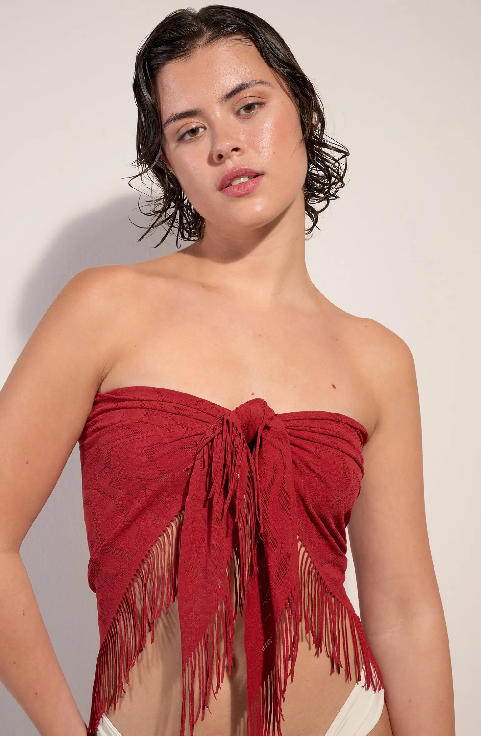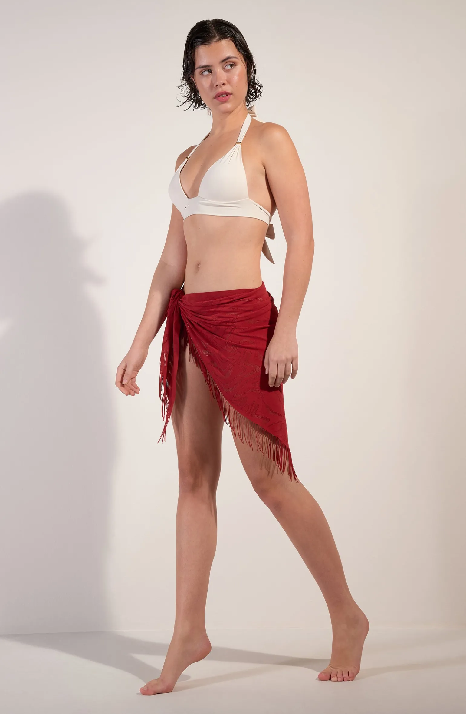 Élégant et léger, la paréo TRUDY en dentelle fine à franges est un essentiel. Placé sous le signe du grand large, son motif inspiré des ondes marines appelle à une liberté joyeuse. Garance, un rouge de caractère, nuance écarlate et séductrice.