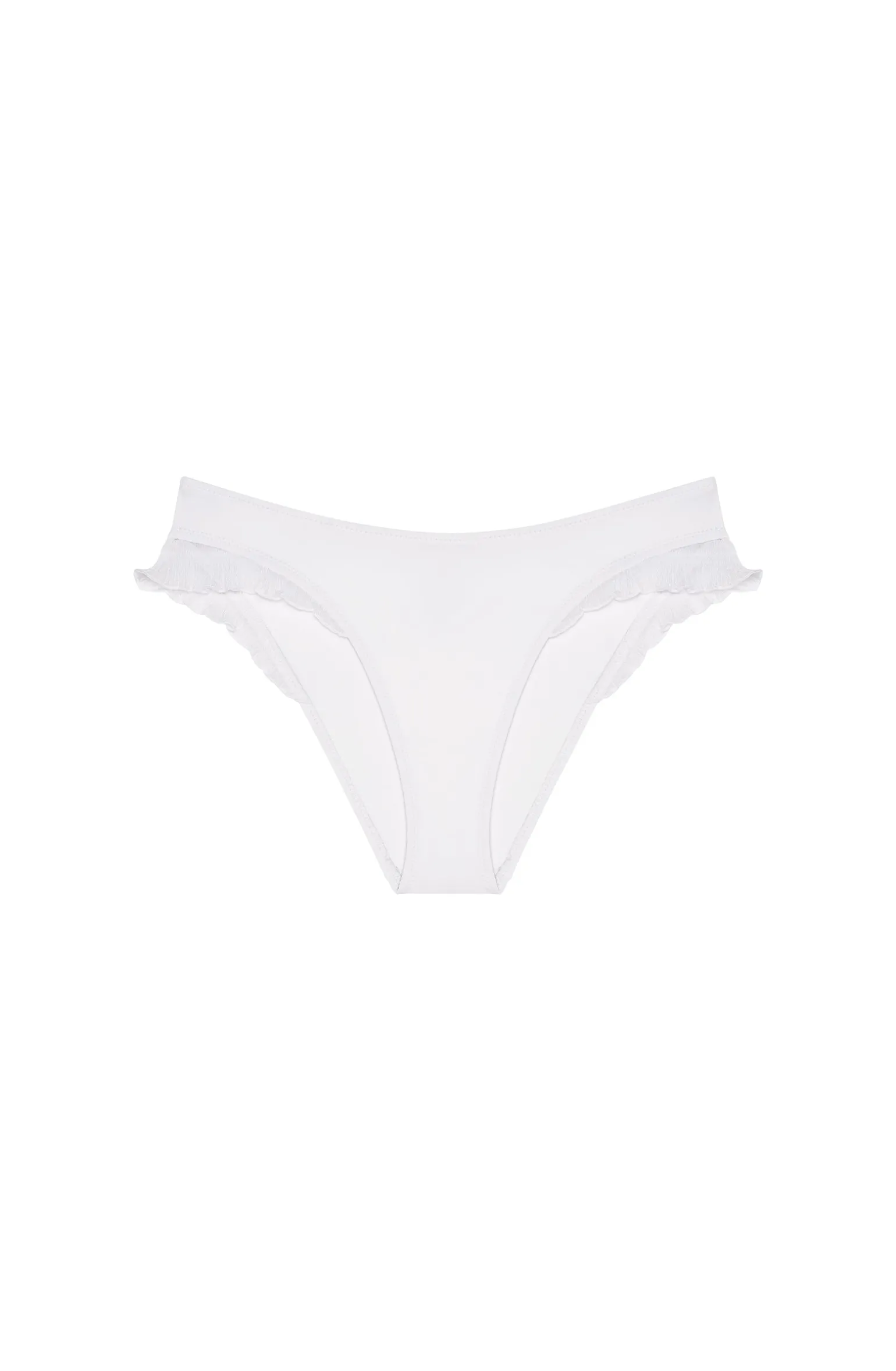 Avec sa coupe couvrante, le bas de maillot taille basse TYMA se pare de volants en mousseline plissée sur les côtés. Échancrée sur les hanches, cette culotte de bain allonge la silhouette en la sublimant. Pur et délicat, le blanc illumine le teint.